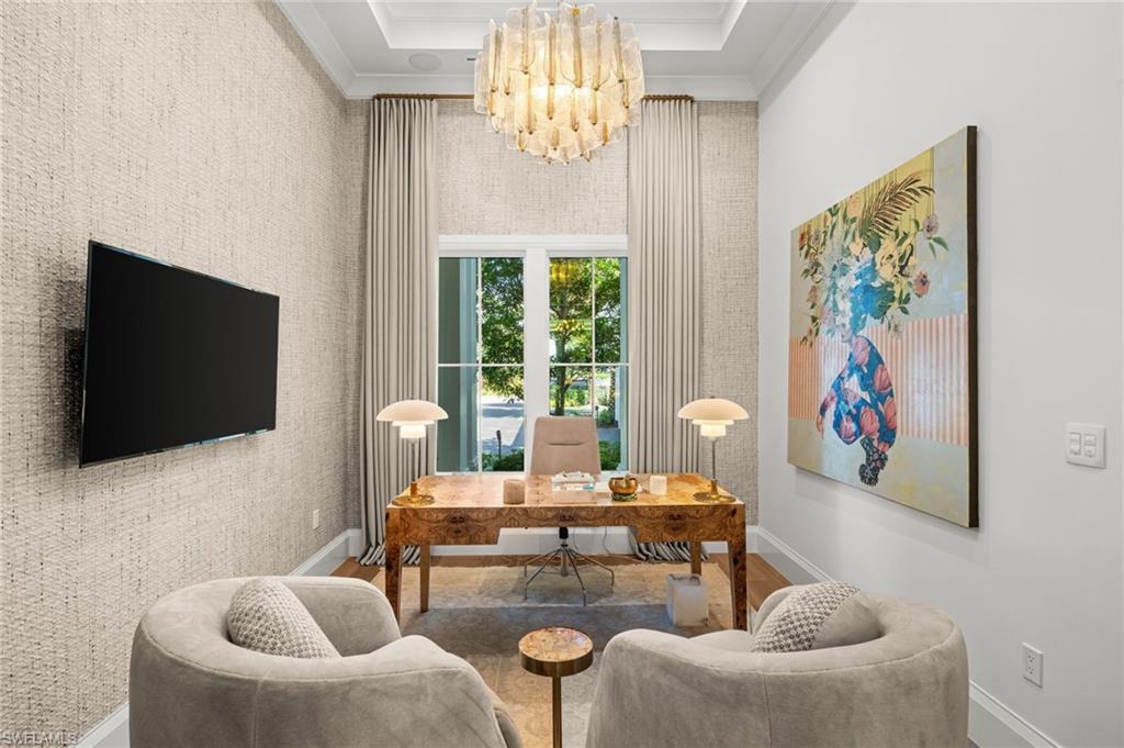 Sophisticated yet effortless, 142 Eugenia Drive will change the way you think about living. The home unfolds with couture wall coverings, rich textures, and curated lighting, each room shaped with its own quiet personality. Every surface, every finish, every detail reflects a thoughtful hand and an unmistakable sense of craftsmanship. At the heart of the home, the wine room becomes an unexpected moment of delight. Wrapped entirely in gold, it shimmers like a jewel box; a place that instantly shifts the energy of the home and reminds you that luxury can be playful, too. Indoor and outdoor living meet seamlessly here. A twisted-branch artisan sculpture ignites into a dramatic fire feature, casting a warm glow across the pool and patio. The outdoor living area creates a space to gather and features two distinct hand-selected onyx stones, including a fully illuminated onyx bar that transforms evenings into extraordinary experiences. Beyond it, a beautifully appointed one-bedroom, one-bath bungalow offers guests the luxury of privacy and comfort. Though the home feels sculptural and serene, it hums with hidden intelligence. Lighting, climate, music, and water are orchestrated with quiet precision, letting the moment, not the technology, take center stage. Refined yet welcoming, every aspect of this home is intentional, balancing beauty and comfort. 142 Eugenia Drive is where timeless architecture meets livable luxury.