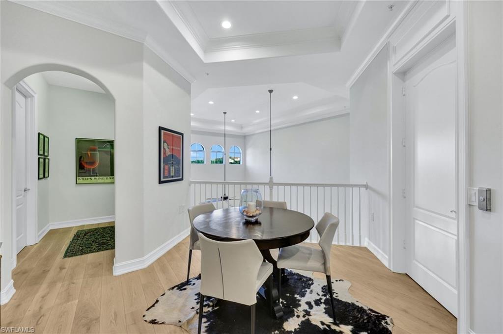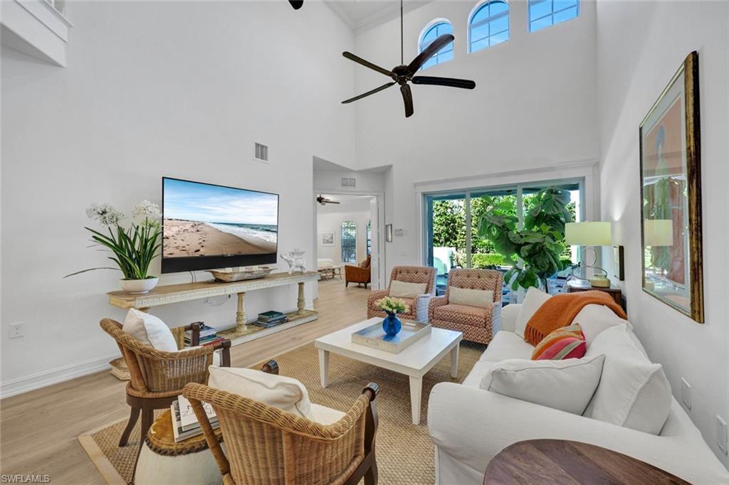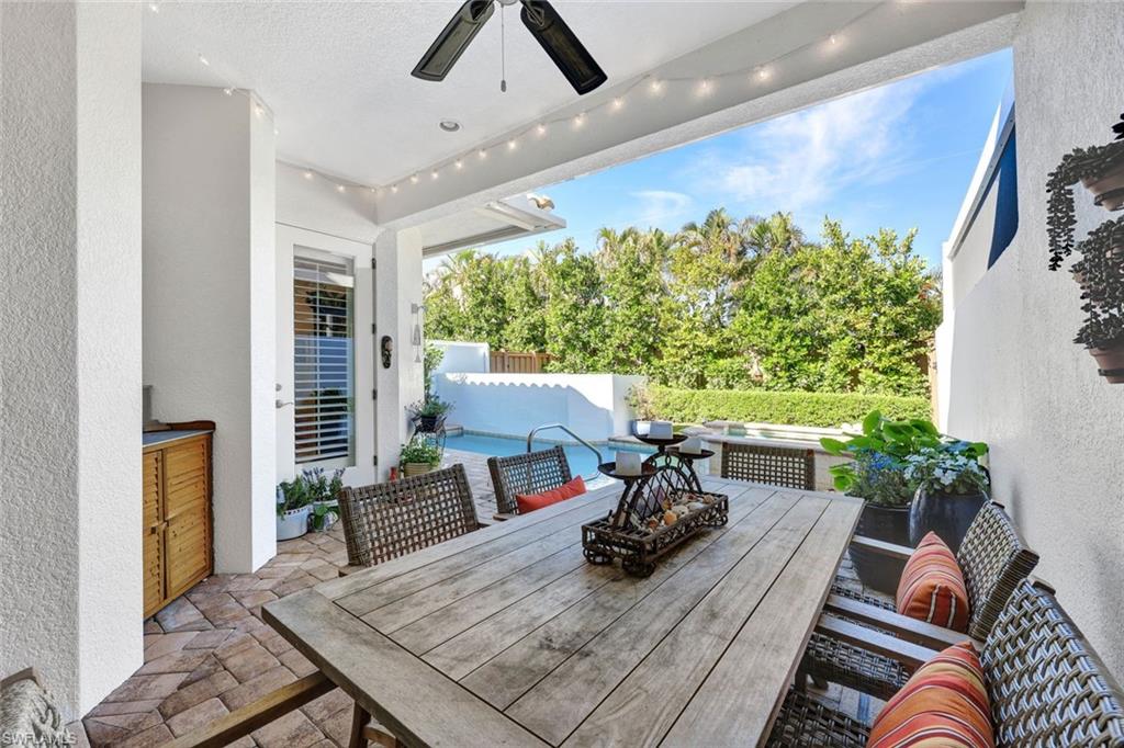 Exceptional location, living space size, elevation... and price! Luxurious Park Shore townhome with over 3200 SQUARE FEET of living space, this stunning 3 bedroom plus den residence combines the ease of villa living with the privacy & space of a single-family home. Perfectly situated and recently renovated on a serene private cul-de-sac, it is just moments to the beach, as well as upscale shopping and dining. The beach, Waterside Shoppes, Venetian Village, and Artis-Naples are moments away, as well as Seagate Park with its tennis courts & playing fields. The open floor plan flows seamlessly through living spaces adorned with volume tray ceilings, crown molding, solid wood doors, fresh paint, and newly installed Legno Bastone Italian wide plank wood floors throughout the home. The great room boasts 25' ceilings and expansive windows filling every corner of this home with natural light. The triple sliding impact glass doors open to a spacious, lush and private lanai, featuring a sparkling heated pool and spa, a new privacy fence, landscaping & night lighting, all perfect for relaxation or entertaining. The newly renovated gourmet kitchen is a chef’s dream, featuring solid wood cabinetry, white quartz countertops with a marble backsplash, and a full suite of Viking appliances, including a 6-burner gas range with a pot filler, a wall oven, convection microwave, and built-in refrigerator. In addition to a formal dining room, this level has a spacious office perfect for the remote worker. This main floor also includes the luxurious primary suite with newly installed closet organizers and a sumptuous bathroom retreat with a separate soaking tub, his/her vanities and large shower. A private elevator provides convenient access to the spacious second level with soaring tray ceilings. Here, you'll find a media room, family room or second office complete with new built-in bookshelves and cabinets, a wet bar and wine cooler. Two large guest bedrooms with renovated en-suite bathrooms allow privacy and comfort for family and friends. There is plenty of storage throughout the home, but this level has an extra large storage closet plumbed for secondary laundry machines for added convenience. THIS VILLA IS LOCATED IN AN X ZONE ELEVATION AREA - with no water intrusion from any prior storms. Lusso Villas has a condo association of 5 townhouse units with strong reserves. This summer, all units have been freshly painted, new exterior lighting installed, new landscaping installed, and new iron gates in front of each unit have been installed. All this was done with NO ASSESSMENT. THESE FEES COVER PROPANE GAS, WATER, SEWER, LAWN MAINTENANCE, IRRIGATION, INTERIOR AND EXTERIOR PEST SERVICE, ROOF MAINTENANCE, EXTERIOR WINDOW WASHING, EXTERIOR PAINTING, PAVERS, INSURANCE, MANAGEMENT, & RESERVES. This exquisite home seamlessly combines refined elegance, thoughtful design, & an unbeatable location—all with the added convenience of an effortless "lock and go" lifestyle.