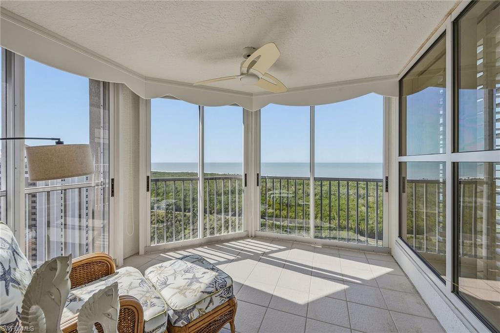 This rare two-story penthouse residence offers a sophisticated architectural presence seldom found in the Naples high-rise market. On the 21st floor, PH-2 delivers elevated coastal living with expansive western exposures overlooking protected mangrove preserves and the open waters of the Gulf of Mexico, providing breathtaking sunset views and a remarkable sense of privacy. The residence encompasses 2,703 square feet of verified living area and features four bedrooms plus a den and 3.5 baths, thoughtfully arranged across the two levels. This distinctive layout creates natural separation between private living quarters and main entertaining spaces, an intentional design benefit that enhances livability, functionality and guest privacy. For buyers seeking the scale and flow of a single-family home with the ease of condominium living, this architectural configuration offers an exceptional solution. Interior updates and improvements reflect commitment to quality and comfort, with refined finishes, generous ceiling heights, and expansive window walls that maximize light and views throughout the home. The kitchen has been remodeled and enhanced, offering granite countertops, updated cabinetry and stainless steel appliances. Hurricane-impact glass windows provide storm protection, energy efficiency and peace of mind. The air-conditioning system has been replaced in recent years, underscoring the attention given to the mechanical infrastructure. The residence has been carefully maintained and enhanced to support full-time and seasonal living, offering immediate enjoyment while allowing flexibility for further personalization. The building’s recently updated common areas set a luxurious tone upon arrival, with redesigned lobbies and resident spaces that elevate the overall living experience and reinforce long-term value. Residents enjoy a refined, well-managed environment within Pelican Bay, one of Naples sought-after coastal communities. Ideally situated in Naples, this penthouse combines architectural distinction, upscale amenities and proximity to Pelican Bay’s beaches, dining and cultural offerings, presenting a compelling opportunity for buyers seeking a premier lifestyle at an elevated standard.