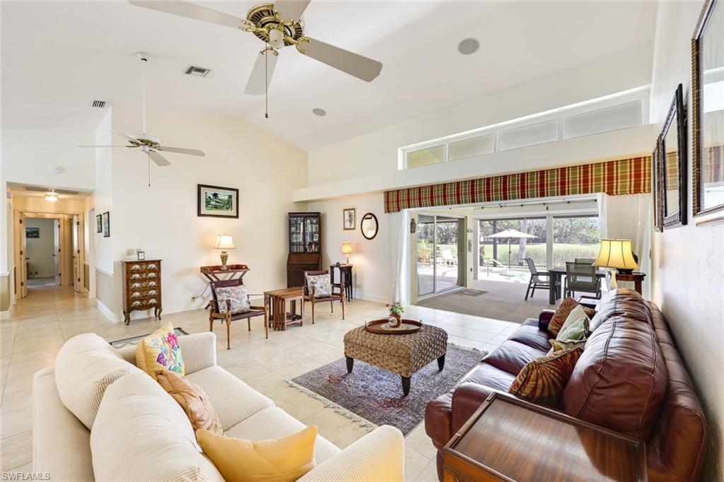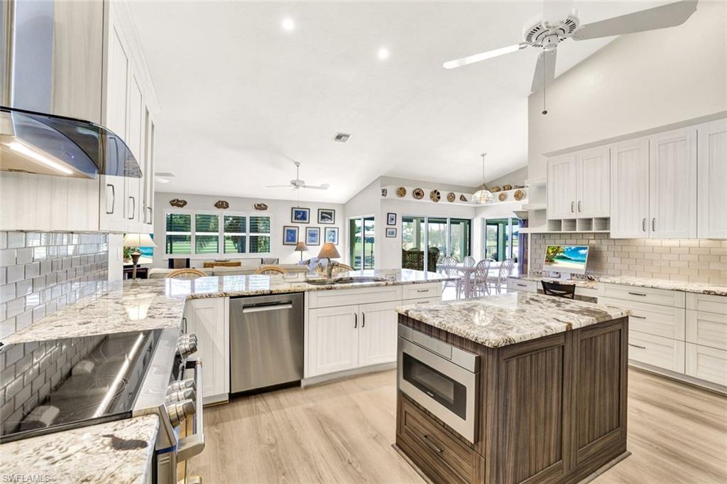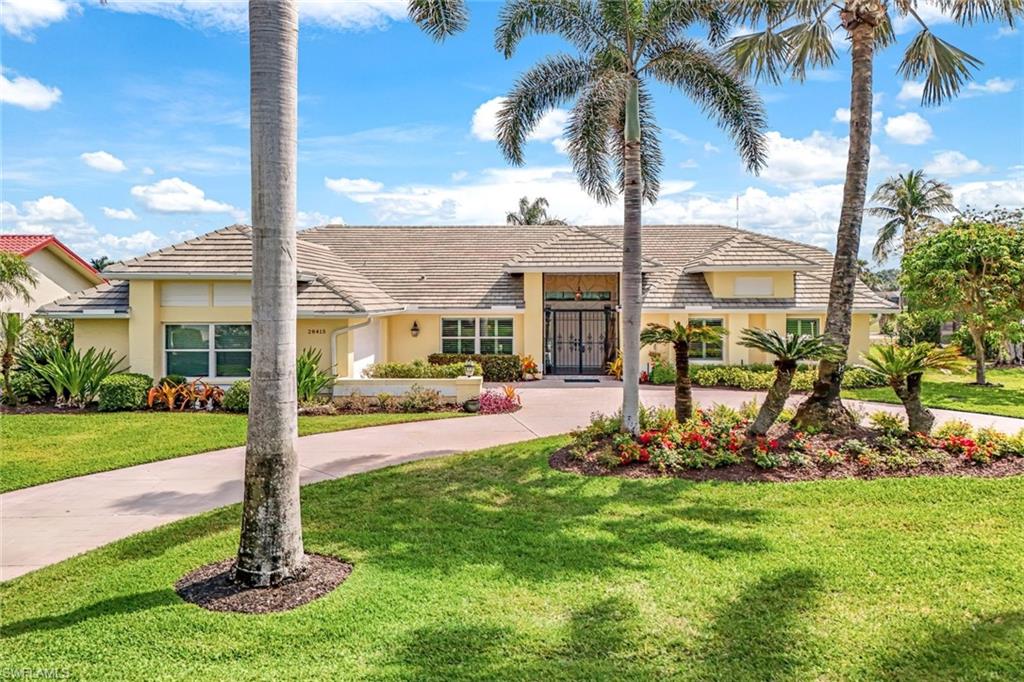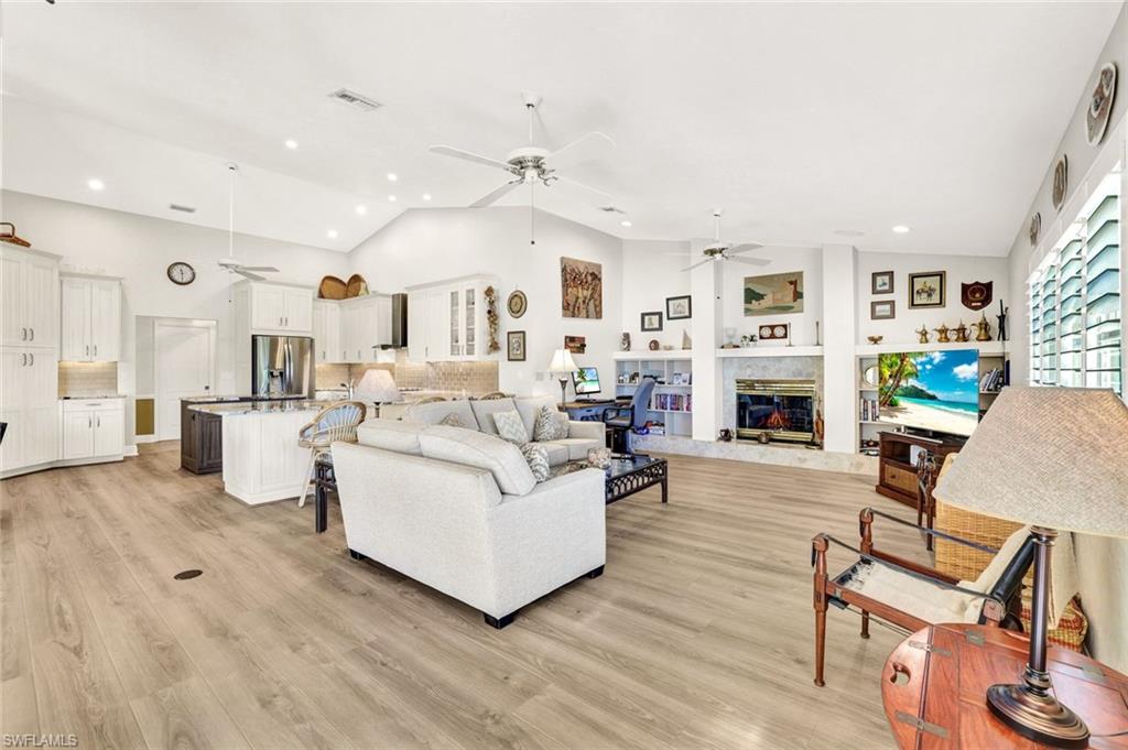 LOOK NO FURTHER…GORGEOUS 4BR/3BA POOL home, located in Spanish Wells Golf & Country Club is sure to impress! Adorned by lush landscaping and MINUTES to the Gulf, situated on an oversized lot with lake AND golf course views...THIS is what SWFL living is about! Home boasts a 500 gallon propane tank AND whole house generator (2024), newer AC units (2024 & 2022), newer tile roof (2021), TWO newer hot water heaters (2021), newer lanai screens including panoramic screen (2018), vaulted ceilings, stunning pool with HUGE lanai for entertaining, hurricane impact windows and doors, electric hurricane shutters on lanai and front entry AND SO MUCH MORE!!! Spend warm, leisurely days floating in your private pool while admiring the views. Relax by the wood-burning fireplace on those cool winter nights. Prepare your favorite meals while enjoying serene lake views in your COMPLETELY REMODELED kitchen with BRAND NEW luxury vinyl plank flooring. In the evenings, retire to your primary retreat, also overlooking the pool. Upgraded primary bathroom offers PLENTY of room for two. Additional guest bedrooms are privately tucked away from the main living areas. Home includes a 4th bedroom off the primary suite, currently being utilized as a den. Additional highlights include a two-car garage with fresh epoxy flooring plus a separate golf cart garage with private entry. THIS is the PERFECT home in the PERFECT location – MINUTES to Bonita Beach AND Downtown Bonita Springs. The burgeoning Downtown Bonita Springs boasts eclectic restaurants, coffee/wine bars, craft cocktail bars, craft breweries and a new music venue. The arts are alive in Bonita, with plenty of festivals, artist cottages, music in the downtown amphitheater - all just a short bike ride from this home. PLUS, just a short drive to 5th Avenue in Downtown Naples, RSW International Airport, shopping, grocery AND MORE. For an additional fee, you can purchase a social or golf membership to Spanish Wells Country Club. DO NOT miss YOUR opportunity to experience all that Bonita Springs has to offer, not only in a community, but especially in a home.