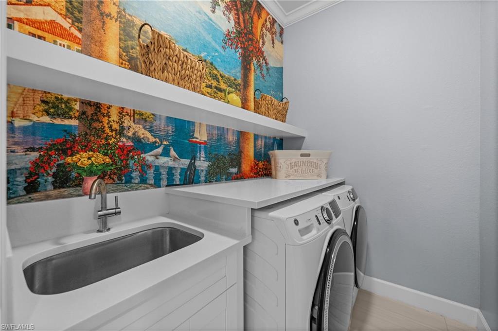 Prepare to be captivated by this beautifully reimagined 3-bedroom, 3-bath pool home with a den (optional 4th bedroom) and an oversized 3-car garage. Tucked away on a quiet cul-de-sac, mature landscaping and charming curb appeal set the tone for an inviting, elevated lifestyle. Inside, natural light fills a spacious split-bedroom floor plan that blends casual elegance with modern functionality. A full interior transformation brings a cohesive, fresh aesthetic throughout, boasting new 24x24 tile flooring, crown molding, recessed lighting in every room, designer fixtures, and beautifully updated trim on all windows and sliders. For lasting value and peace of mind, the home features a whole-house water filtration system, newer PEX plumbing, a tankless water heater installed in 2024, and Storm Smart hurricane screens and electric shutters. At the heart of the home, the beautifully redesigned kitchen is an entertainer’s dream. It features all new appliances, granite countertops, custom hood, new cabinetry, overhead lighting, and an impressive 12-foot island. A charming front sitting area enhances the home’s flow and ambiance, featuring custom built-in cabinetry, shiplap detailing, a mirror backing, and a dedicated wine refrigerator. Additional cabinetry in the main living area provides seamless, functional storage. The primary suite is a private sanctuary, featuring a custom-designed walk-in closet and a stunning spa-inspired bathroom with modern finishes. Guest spaces are equally inviting with fully renovated bathrooms offering contemporary style. Outdoor living is designed for relaxation with a saltwater pool (converted in 2023), a fully fenced private backyard, and partial lake views. This home is a true gem, where every detail has been thoughtfully upgraded, offering a harmonious blend of luxury and comfort. Residents enjoy the community benefits of larger lots, low HOA fees (including cable and fiber-optic internet), and two convenient entrances from Livingston Road and US-41.