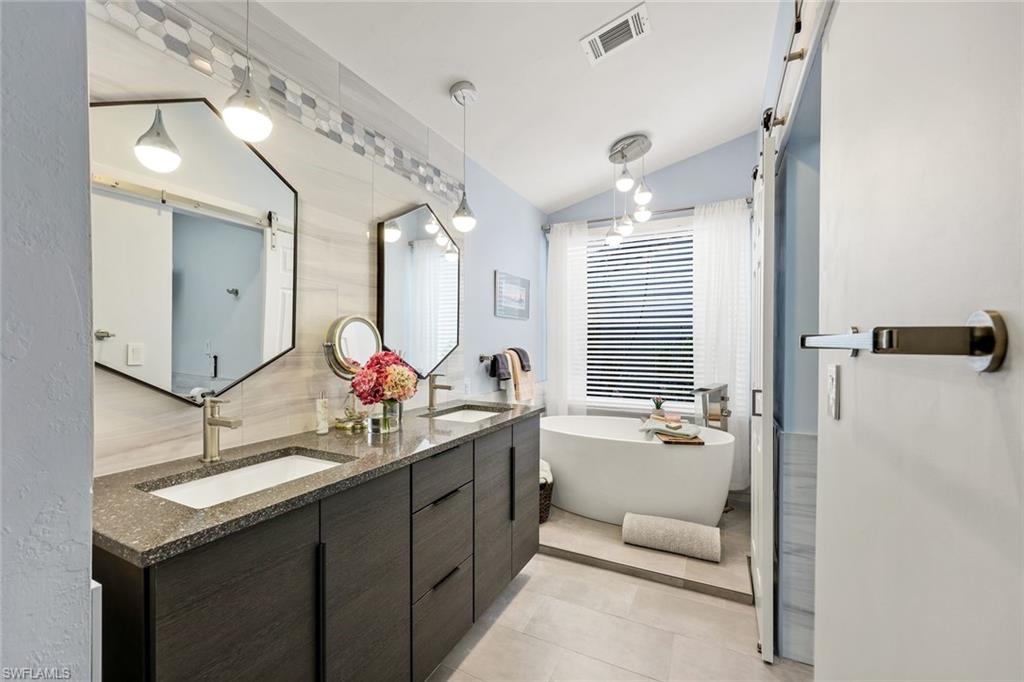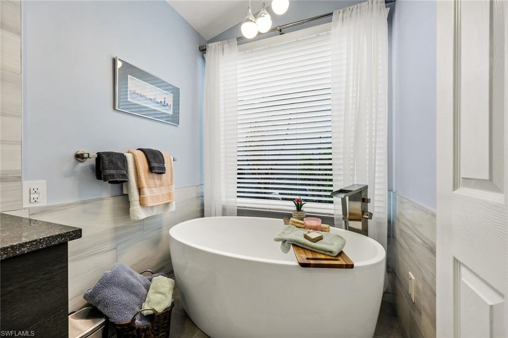 Beautifully updated home in the sought-after community of Bonita Bay. This Bright, open home features 3 bedrooms, 2 baths, has easy to care porcelain and tile flooring throughout the house, and updated kitchen with Bosch appliances, updated bathrooms and contemporary finishes throughout the home. The screened-in lanai overlooks a charming backyard featuring a walking path and landscape lighting - perfect for relaxing or entertaining. Join neighbors and friends at the community pool just a short walk away from home. Enjoy Bonita Bay's unmatched amenities, including a private beach club, kayaking, canoeing, pickleball, tennis, multiple parks, and 11+ miles of walking and biking paths. Residents also have access to a full-service marina and onsite restaurant, with optional memberships for a premier country club, five world class golf courses, a state-of-the-art fitness center and so much more. Conveniently located near top beaches, dining, shopping, and entertainment, with easy access to RSW Airport and I-75. The Promenade is just a short walk away. A wonderful home in a premier community - your new lifestyle awaits!