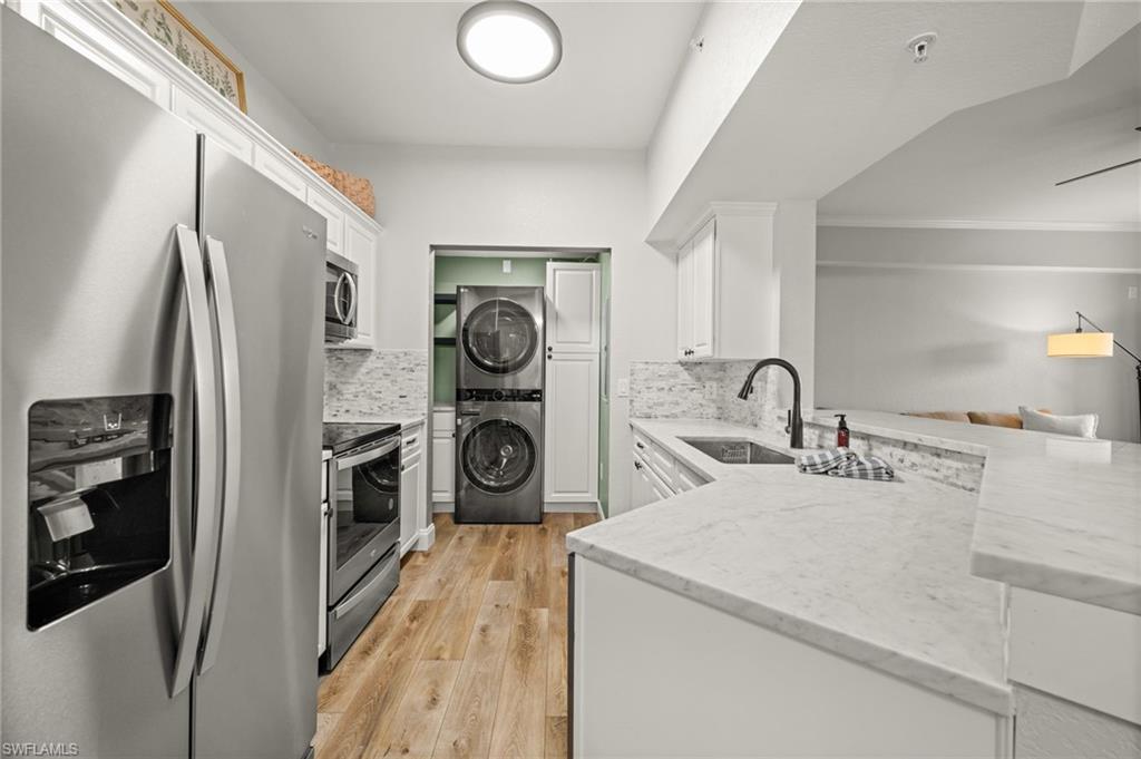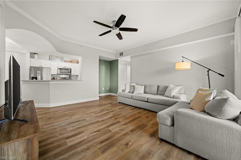 Job relocation & seller leaving brand new reno...Live the resort lifestyle in this highly sought-after floor plan—the FULLY renovated airy 3-bedroom 3 walk in closet, 2-bath w/ private sunny lanai, Top-Floor end unit offering stylish comfort in the heart of Naples in a Elevator & PET friendly bldg...Be sure to click on Lifestyle video.. A few steps from the Resort center & your end unit parking space & New news- impact windows are to being installed ! This light-filled residence features wood-style vinyl flooring throughout, stylish hardware, and stainless steel appliances, creating a fresh and modern aesthetic from the moment you enter. The well-designed end-unit layout provides exceptional privacy, with a large living area and three comfortably sized bedrooms, including a serene primary suite with its own ensuite bath. The screened lanai enhances your outdoor living experience, making it an ideal spot to unwind and enjoy peaceful evenings. Positano Place is a gated, amenity-rich community centered around sparkling lakes with lighted fountains and lush, mature landscaping. Residents enjoy access to a beautifully designed community center with soaring ceilings, an executive business center, media room, internet café, and a state-of-the-art fitness center. Outdoor amenities include a resort-style lakeside pool and spa, gazebo with Jacuzzi area, outdoor sports bar with TV, tot lot, billiards room, and even a car care facility. Architectural touches such as 9-foot ceilings, decorative arches, crown molding in main living areas, and built-in niches add to the charm and elevated feel of the neighborhood. Perfectly positioned on Livingston Road just south of Pine Ridge, Positano Place places you minutes from Naples’ finest attractions—pristine Gulf beaches, Mercato’s dining and entertainment, Waterside Shops, and everyday conveniences. A rare opportunity to own a top-floor Monaco unit in one of Naples’ most centrally located and desirable communities.