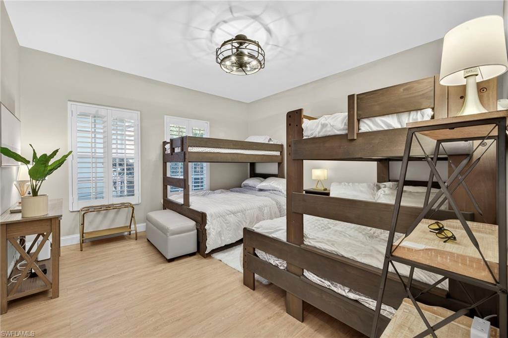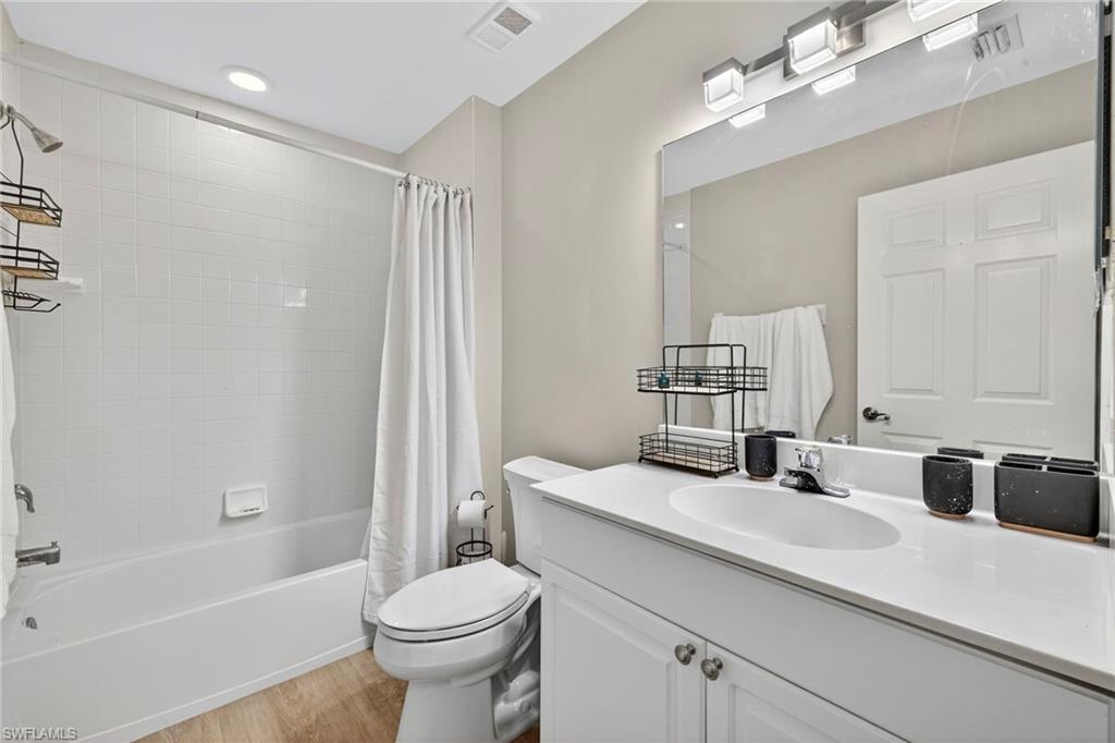 Beautifully updated 3-bedroom, 2-bath lake-view coach home in the desirable gated community of Egrets Walk at Pelican Marsh. This light and bright first-floor end unit features 1,696 sq ft of living space, an attached one-car garage, and a glass-enclosed lanai with serene lake views. The kitchen has been fully remodeled with white custom cabinetry, quartz countertops, and stainless-steel appliances. Driftwood-tone laminate flooring runs throughout—no carpet. Plantation shutters, updated lighting, and a remote lanai sunshade add to the home’s comfort and style. Major updates include a new A/C (2024), new plumbing (2024), water heater (2022), and roof (2019). Egrets Walk residents enjoy two community pools, a clubhouse, fitness center, and direct access via private gate to Mercato and Whole Foods. Pelican Marsh offers top-tier amenities including tennis, pickleball, bocce, and a full social calendar—all within minutes of Vanderbilt Beach. Move-in ready and ideally located for year-round or seasonal living in North Naples.