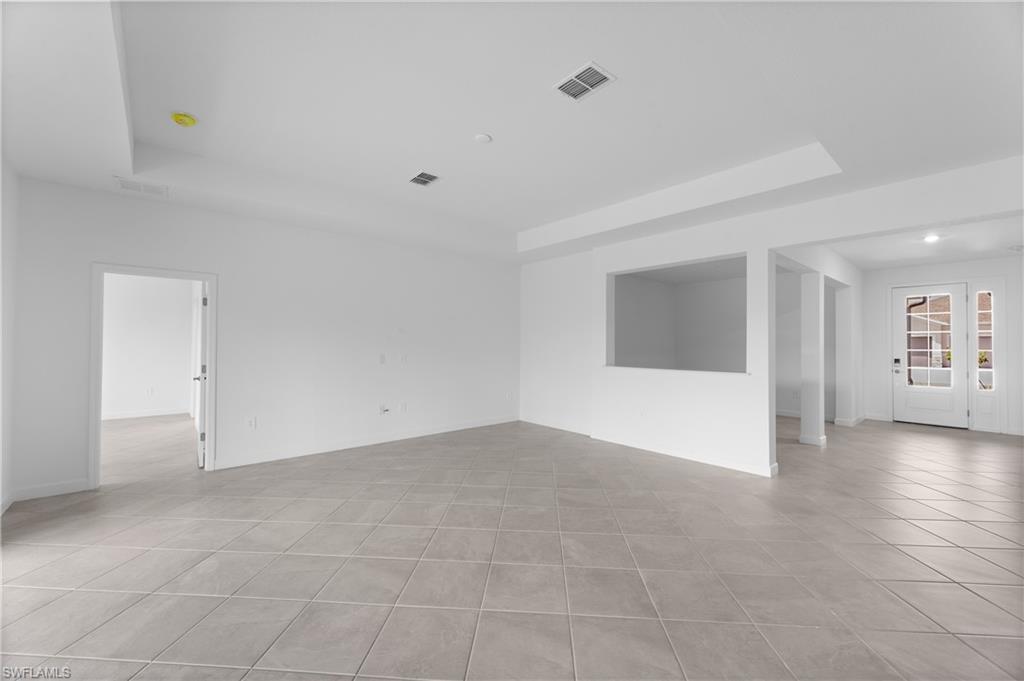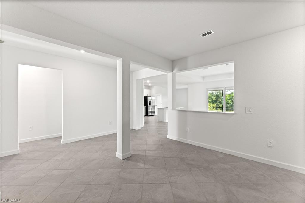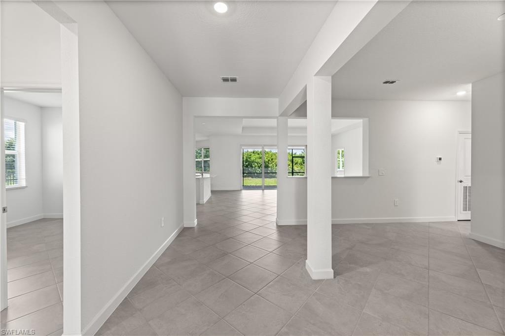 Valencia Golf & Country Club is a gated community of new single-family homes for sale, tucked away in a quiet corridor of one of Southwest Florida’s fastest growing areas. This spacious single-story home features a formal dining room with elegant arched doorways, followed by an open layout among the Great Room, kitchen and breakfast nook to simplify everyday living. Nearby, a covered lanai expands the home for activities in the fresh air. In addition to the lavish owner’s suite with direct access to the lanai for outdoor moments, there are three secondary bedrooms and a three-bay garage for versatile needs. Prices, dimensions and features may vary and are subject to change. Photos are for illustrative purposes only. Estimated delivery date is mid to late 2026.