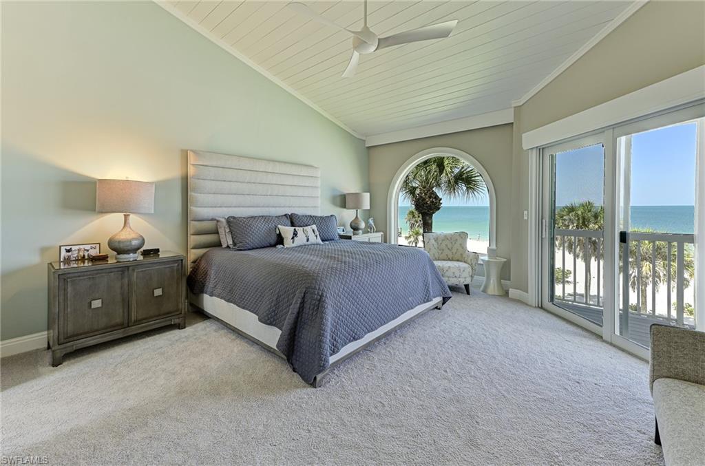 This furnished Barefoot Beach Gulf front Villa home was completely reimagined and renovated to the highest standards including: enlarged windows that provide amazing beach views and sunsets to the west, north, and south, an open floor plan that lives like a single family home, 3 en-suite bedrooms plus a half bath, a large sun deck with ultimate views, beautiful white kitchen with accent large island, quartzite countertops, Wolf range & Thermador refrigerator/freezer, a large two story great room, a dining area overlooking the beach, and panoramic aqua water & white sand views everywhere. The renovation included new impact windows and doors, plumbing, electrical, insulation, drywall, AC, cabinetry, flooring, baths, kitchen, fixtures, railings, garage doors, millwork, interior doors and was completed in 2020 (original construction 1990). There is also a 2 car garage and a screened lanai with electric shutters on the beach. This is one of only 4 Villa end units that provides light throughout and the Villa with the best Gulf of Mexico views because this building sits further west than the other building. The Villas at Barefoot Beach is located in Collier County inside the gates of Barefoot Beach and offers 24 hour patrolled security, two swimming pools, a spa, a new beach boardwalk with sunset seating and is an HOA (not condominium) - you own the ground under the Villa. Do not miss this rare opportunity to own a direct beachfront like new Villa for a fraction of the cost of a beachfront home.