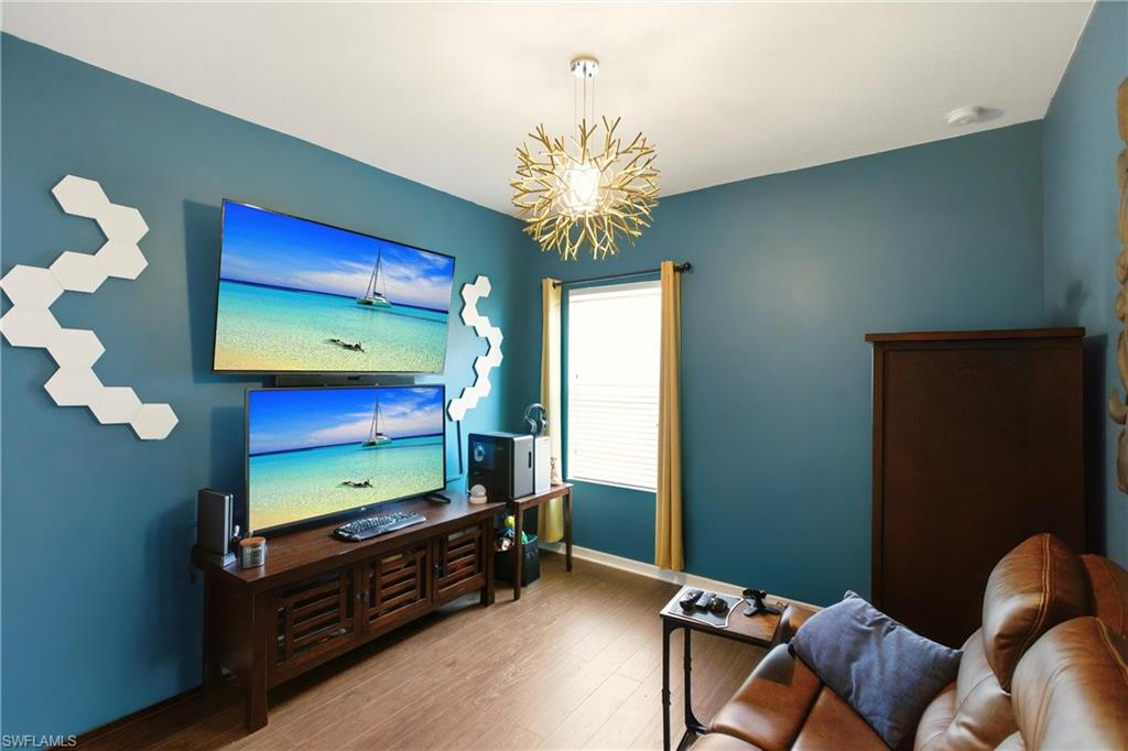 Discover Reflection Lakes of Naples, a Boutique Gated community where resort-style amenities meet everyday comfort. This beautifully maintained 2016 home is truly move-in ready, showcasing an open-concept design filled with Natural Light, Elegant Tray Ceilings, and Diagonal Tile Flooring in the main living areas complemented by Luxury Vinyl Plank in the bedrooms. Offering 4 Bedrooms and 2.5 baths, the home provides generous space for family and guests, with two bedrooms currently serving as a game room and home office. The Gourmet Kitchen is a Chef’s Delight, featuring 42" shaker cabinetry, stainless steel appliances, a walk-in pantry, and a stylish tile backsplash — perfect for casual meals or entertaining. The primary suite is a Private Retreat with dual walk-in closets, dual vanities, and a spacious walk-in shower. Step outside to the covered lanai, ideal for gatherings, or simply relax while enjoying the peaceful backdrop of tall trees and the occasional deer. Residents of Reflection Lakes enjoy a wealth of amenities including a Clubhouse, Fitness center, Heated Lakeside Pool and separate Kiddie Pool, Bocce ball, Billiards, Library, and an active social calendar. With Palm-lined sidewalks, no CDD fees, and a Prime Location just minutes from Marco Island, Downtown Naples, world-class Beaches, Dining, and Shopping, this home offers the perfect blend of Serenity and Convenience.