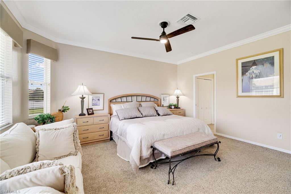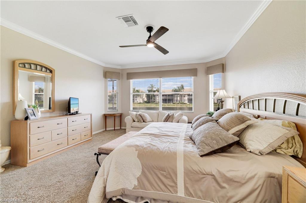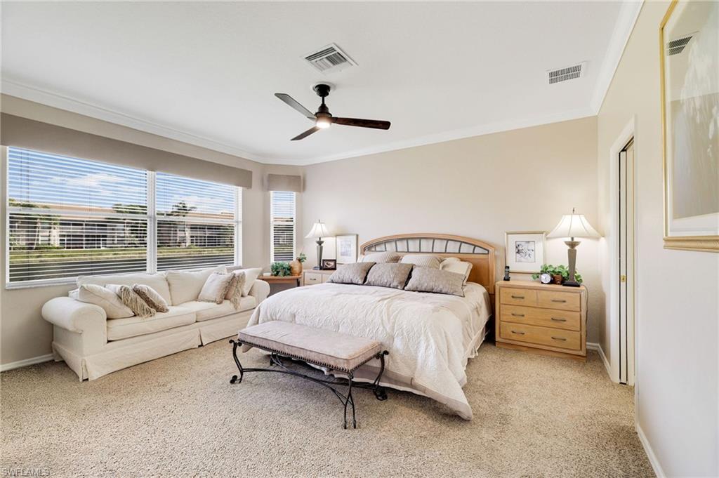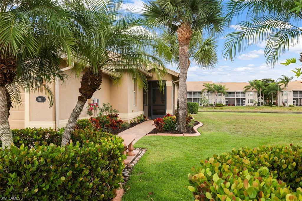 Welcome to this stunning 2-bedroom, 2-bathroom villa with a den, ideally situated on an oversized cul-de-sac lot with peaceful water views. This spacious St. Andrews floor plan offers comfort, style and thoughtful upgrades throughout. Step inside to a gourmet kitchen featuring new Bosch appliances, granite countertops and ample cabinetry, perfect for cooking and entertaining. Additional recent updates include a new roof, water heater, washer and dryer, refrigerator and upgraded garage flooring, providing exceptional value and peace of mind. A screened lanai offers the perfect place to unwind and enjoy the tranquil surroundings. The home also features a 2-car garage with extra storage and a versatile den ideal for an office or flex space. All villas are scheduled for fresh exterior paint at the start of the new year. Located within walking distance of resort-style amenities, you’ll enjoy access to tennis and pickleball courts, volleyball, a skating rink, bocce ball and more. With convenient proximity to shopping, dining and the interstate, this home offers the perfect blend of serenity and accessibility. This home truly has it all - modern upgrades, generous living spaces and an unbeatable location. Don’t miss your chance to make it yours!
