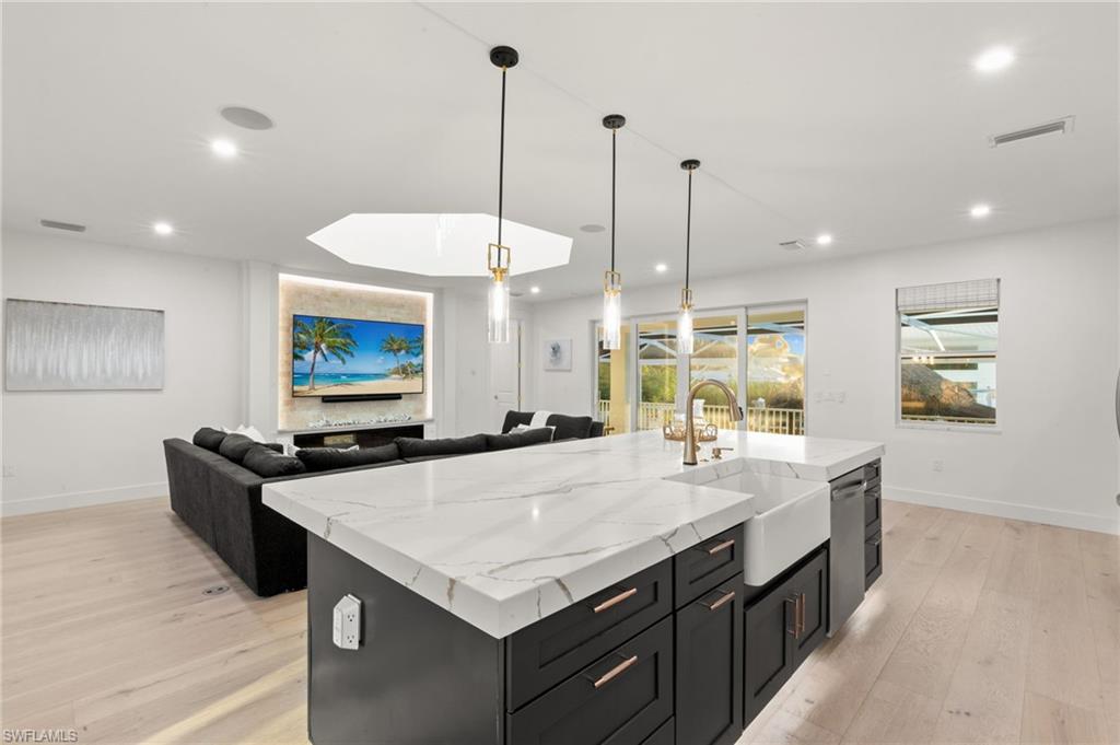 Welcome to 1794 Holiday Lane, a brand-new construction home in the rapidly evolving Brookside neighborhood—a neighborhood transforming into one of the city's most dynamic pockets. Designed for water lovers, the property sits in a true boating community with easy access to the Gulf, Naples Bay, and the Gordon River—ideal for kayaking, paddle boarding, or exploring Naples’ scenic waterways. A 10,000 lb boat lift and floating dock make getting on the water effortless, while backwater and offshore fishing are right at your fingertips. Inside, enjoy an open, bright layout with real hardwood flooring throughout, total home automation, and thoughtful upgrades that enhance everyday comfort. The home is equipped with Starlink high-speed internet, a whole-house generator, a 500-gallon propane tank, an on-demand tankless water heater, and an EV-ready garage with room for two car lifts—perfect for car enthusiasts or additional storage. This elevated residence offers peace of mind and secure living. Outdoors, the home shines with inviting spaces designed for both relaxation and entertaining. Enjoy evenings around the built-in firepit, craft meals in the wood-burning pizza oven, or unwind beneath the authentic chickee hut, complete with electric and nearby water access. The backyard provides the perfect vantage point for taking in radiant, glowing sunsets or spending peaceful days, curled up with a book, in the shade. Located in an area undergoing thoughtful redevelopment just minutes from Downtown 5th Avenue and Naples’ renowned beaches, this home offers unmatched convenience to dining, shopping, and Southwest Florida’s most coveted coastal experiences. 1794 Holiday Lane is more than a home—it's a lifestyle. Experience modern living, waterfront freedom, and the best of Naples in a community poised for continued growth and enjoyment.