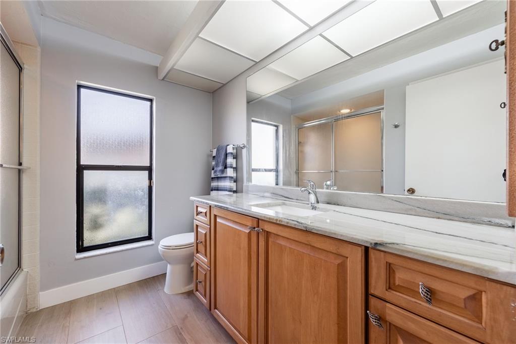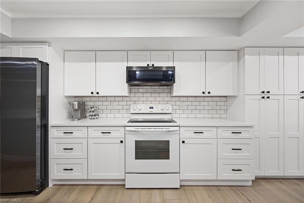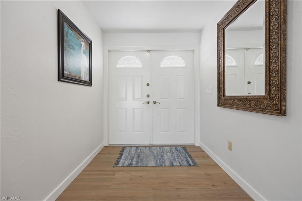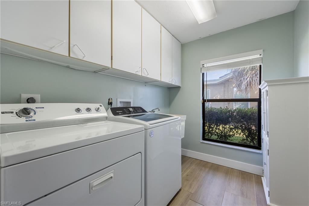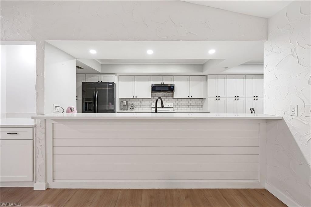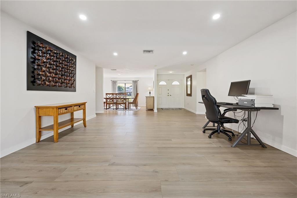 Updated golf course pool home with solar in gated Spanish Wells. This 4-bedroom + den, 3-bath, 3-car garage residence offers approx. 2,838 sq. ft. of living area with long golf and landscaped views. Since 2021 the owners have added a whole-house solar system (2022), new HVAC with ductwork (2022), a remodeled kitchen (2021), new tile flooring in the main living areas (2022), an updated electric fireplace feature wall (2022), epoxy-coated garage floor (2023), fresh interior paint, upgraded toilets, new carpet in a guest bedroom (2025), new rollers on sliding doors (2024), plus a new refrigerator (2025) and microwave (2021). Earlier updates include a 2018 roof, updated plumbing, resurfaced pool, and paver pool deck. Enjoy a screened, heated saltwater pool, spacious covered lanai, and plenty of room for entertaining. Spanish Wells offers optional membership with 27-hole golf, dining, tennis, pickleball, fitness center, and resort-style pool, along with 24-hour gated security. Convenient Bonita Springs location close to beaches, shopping, dining, and RSW. Home is offered unfurnished.