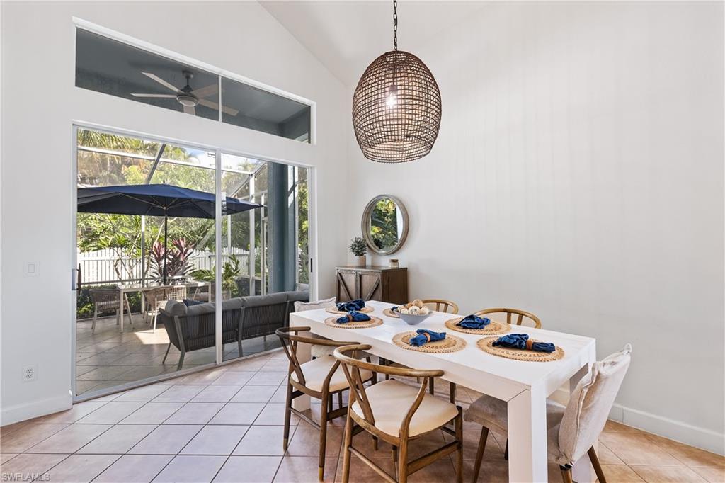 This three bedroom plus large loft/media room (possible 4th bedroom plus a den) single family home offers three full baths, two car garage and an extended screened lanai plus a fenced in yard and is in a fantastic location in Naples in a gated resort style community with a wonderful school district. NEW ROOF 12/14/24. Enjoy the remodeled kitchen and baths, tile and vinyl plank flooring, high ceilings and upgraded lights and fans. This home is located in the resort style community of Sterling Oaks. Location is great and is within minutes drive to four beautiful white sandy beaches, shopping, restaurants and every other amenity imaginable. Enjoy resort pools, a cabana bar where you can enjoy lunch and a cold beverage, happy hours, bocci and pickle ball, fitness center with locker rooms, sauna, a restaurant for special occasions and holidays plus Friday night dinners, walking paths, a kids play area all in a very social environment. There is also an optional tennis membership that offers 12 Har Tru tennis courts, a USTA teaching pro for clinics and private lessons and team play at a very reasonable monthly rate.