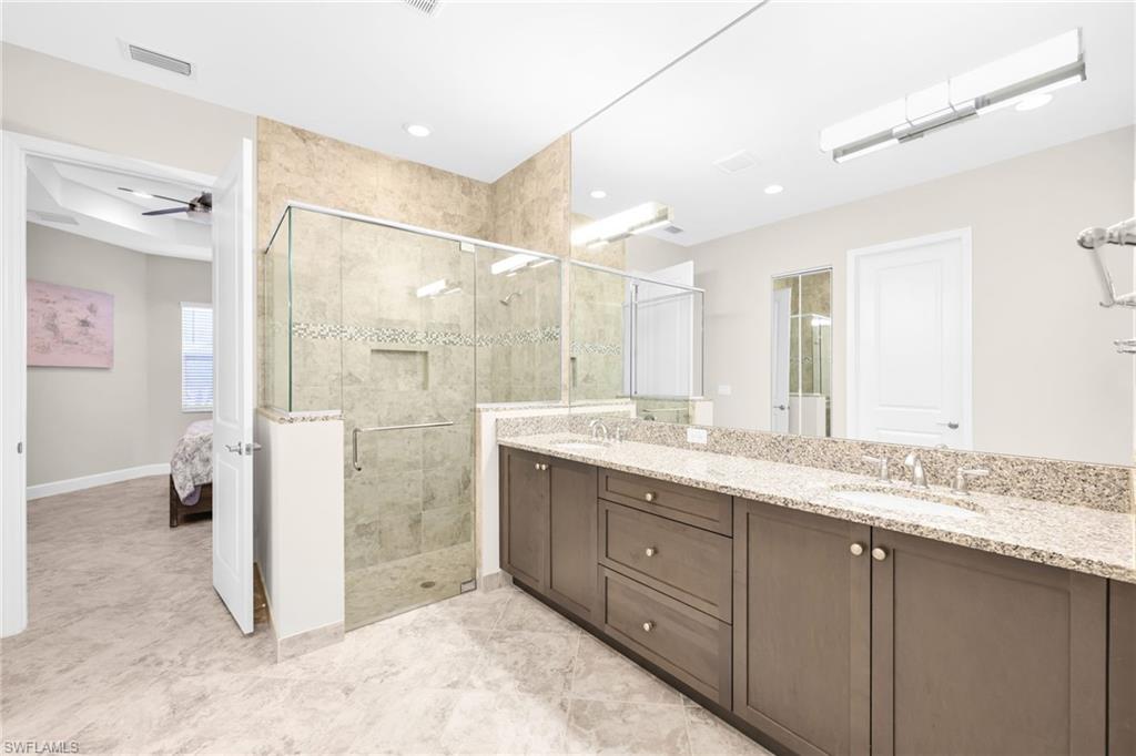 Beautifully appointed 2-bedroom plus den, 2-bath residence, with 2-car garage— this Hampton model has an exceptional layout that stretches the full width of the home’s rear living space. This thoughtful design creates an expansive setting ideal for entertaining and everyday comfort, while offering a layout unlike any other villa model. Good news, this villa is located in the "X flood zone" and impact doors and windows throughout create peace of mind. From the moment you enter, you’ll notice the upgraded finishes throughout: Natural Gas Community, designer lighting, diagonal tile floors that flow throughout the entire villa (No carpet here), and crown molding that adds a refined, cohesive look. At the heart of the home, the open kitchen stands out with granite countertops, stainless steel appliances, natural-gas range, and an inviting dining area perfect for gatherings. The spacious primary suite features a coffered ceiling, dual vanities, a walk-in shower, and a large custom-organized closet. The guest bath is conveniently positioned between the second bedroom and the den, offering privacy and functionality for guests or a home office setup. Outside, you’ll enjoy a serene lake view from the rear of the home along with a meticulous yard and lush landscaping —ideal for relaxing, grilling, or gardening. The community does allow fences, which is a big plus for anyone with dogs. Living in Valencia Bonita means enjoying an unmatched 55+ lifestyle. Residents have access to a spectacular 45,000-square-foot clubhouse offering resort-style pools, lap and resistance pools, indoor/outdoor dining, a full-service spa, fitness center with 40+ weekly classes, and a theater hosting Broadway-style entertainment. Outdoor enthusiasts will love the tennis, pickleball, bocce courts, dog park, and wide variety of social clubs. Nearby, Midtown at Bonita with a variety of restaurants and shops will be opening in 2026. Centrally located near pristine beaches, golf courses, I-75, Naples, RSW Airport, and Fort Myers, this home blends luxury, convenience, and community living at its finest. Don’t miss the chance to experience the lifestyle you’ve been dreaming of—schedule your private tour today!