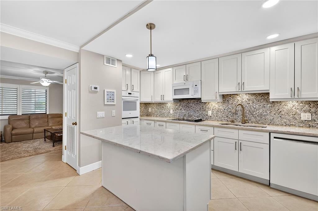 Lovingly renovated, this residence features a modern kitchen, stylish flooring, updated baths, and impact-resistant sliders, windows, and doors for comfort and peace of mind. From its first-floor location, step directly from the spacious lanai onto the lush lawn and enjoy the soothing sound of the fountain as you take in the picturesque 16-acre grounds. The unit also opens to the Capri building's charming courtyard, a sunny, inviting space with tropical plantings and a tranquil fountain, where neighbors often gather for evening cocktails. Hidden Lake offers resort-style amenities, including pickleball, tennis, and a sparkling pool. Ideally situated near premier shopping and dining, the location is truly exceptional. Residents may also join the private Park Shore Beach, with direct Gulf access, parking, and facilities for a modest annual fee. A true hidden gem with an unmistakable Florida vibe, this home offers the best of relaxed coastal living.