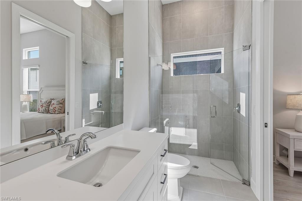 Discover a striking blend of contemporary style and wide-water serenity in this newly completed, fully beautifully furnished and highly upgraded two-story residence in the extremely popular Esplanade by the Islands community. Better than brand new, completed in 2024, this exceptional home was thoughtfully crafted to take full advantage of its expansive lakefront setting, offering sweeping water views from nearly every room. Enhanced with upgraded landscaping, custom lighting, and refined architectural details, it presents an impressive presence from the moment you arrive. With four bedrooms plus a den, four full and two half baths, and a three-car garage, the layout is designed to accommodate both luxurious living and effortless entertaining. Dramatic double-entry doors introduce a light-filled open-concept interior highlighted by elegant volume tray ceilings, designer lighting, transom windows, and extensive millwork. The great room serves as the heart of the home, featuring a shiplap accent wall, built-in fireplace, and pocketing sliders that open seamlessly to the lanai. The chef’s kitchen blends beauty and function with white cabinets, quartz counters, in- and under-cabinet lighting, GE Café stainless appliances, including a natural gas cooktop with pot filler, and a convenient pass-through window to the formal dining area. A spacious island with pendant lighting and the adjoining dining space create an inviting atmosphere for gatherings. French doors lead to the den, a comfortable flex space highlighted by a shiplap feature wall. The primary suite, positioned for privacy, captures tranquil pool and lake vistas and offers direct lanai access, dual walk-in closets, and a spa-like bath complete with a soaking tub, quartz vanities, and a frameless shower. Two additional bedrooms on the main level each feature walk-in closets and their own en-suite baths, with one suite conveniently opening to the pool area. The second floor adds a generous bonus living space ideal for entertaining, highlighted by a sleek wet bar outfitted with quartz counters, a mini refrigerator, microwave, dishwasher, and sink. A powder bath and private guest suite with its own full bath complete the upper level. Outdoor living is one of this home’s most impressive elements. A panoramic screen enclosure frames the expansive lakefront pool and spa area, showcasing a beautiful pool with a sunshelf, and a spacious covered seating area ideal for relaxing or entertaining. The lanai also offers a designated hookup for a future outdoor kitchen, providing the flexibility to customize the space to your ideal alfresco dining experience. Additional features include impact windows and doors, a tankless water heater and three air handlers. Esplanade by the Islands is known for its exceptional amenities such as resort-style pools, pickleball and tennis courts, a state-of-the-art fitness center, a salon and spa, and poolside dining at The Bahama Bar, with the Culinary Center coming soon.