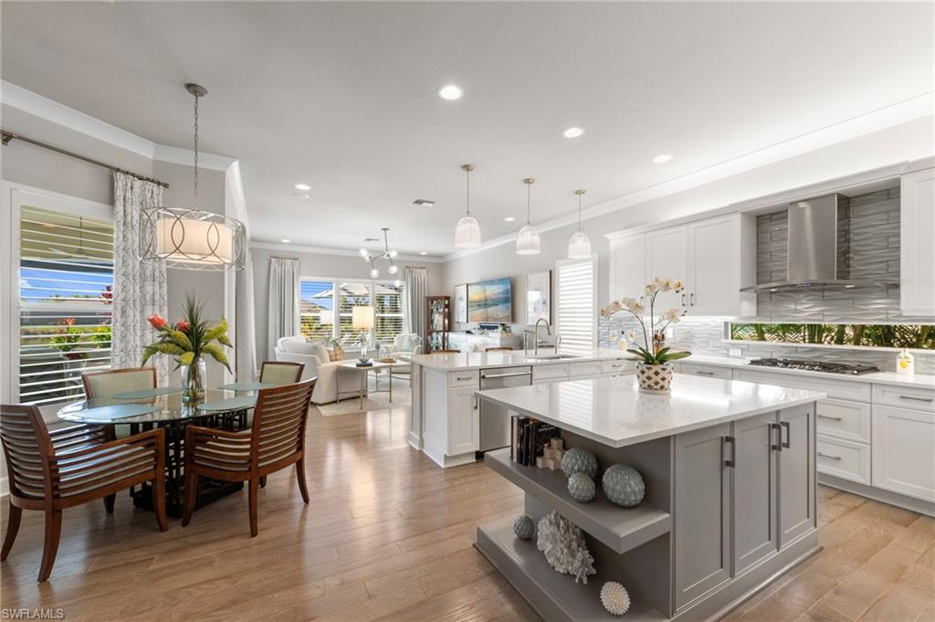 Discover this perfect example of upscale living in this meticulously decorated, custom-built "Lydia" model home by GL Homes, perfectly situated with a magnificent western lake view. Designed for grand entertaining and comfort, this residence boasts an expansive 4 Bedrooms, 3 Baths, a formal dining room, and two complete living areas, offering exceptional flexibility and space. Chef's Dream Kitchen & Superior Upgrades: The gourmet kitchen is a masterpiece featuring new, top-of-the-line Bosch appliances, including a 5-burner gas cooktop and a wine cooler & Mizudo instant hot. Gorgeous cabinetry, complete with convenient lower pull-outs, maximizing storage. Enjoy the elegance of hardwood flooring throughout, custom wood trim, crown molding, plantation shutters, beautiful custom draperies and expensive, upgraded light fixtures. Further enhancing comfort are a tankless water heater and full hurricane windows and sliding doors. Outdoor Oasis & Seamless Entertaining: A true private resort! The large, covered lanai features a custom, heated saltwater pool and spa accented with playful bubblers and multi-colored lighting, plus newly installed autofill system. The Outdoor Kitchen is fully equipped with New top of the line built-in grill, side burner, sink, and refrigerator. The space is completed by three ceiling fans, automatic sunscreens, and a 40-foot "Picture Window" screen enclosure, providing unobstructed lake views. Peace of Mind & Convenience: The home is equipped for ultimate security and comfort with a whole-house generator and a whole-house water filtration system. The oversized 2-Car Garage is a standout, featuring its own Air Conditioning, an epoxy floor, extra storage cabinets, shelving, and a refrigerator. This home is must-see; the list of custom upgrades is endless!
