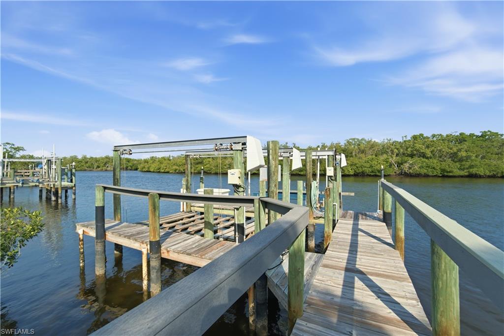Beautifully maintained riverfront home situated along the Imperial River, offering sweeping long river views. Enjoy breathtaking water views with a protected preserve park beyond, offering exceptional privacy. A true beach and boater’s paradise, this property offers convenient access to both Bonita Beach and Barefoot Beach, and features Gulf-access with an ideal boating setup, including a private dock with dual lifts. The home offers a metal roof (2022), whole house generator, propane tank (2020), 3 bedrooms, 2 bathrooms, a spacious sunroom, versatile ground-level flex space, and garage parking for up to four vehicles. Step outside to the expansive deck and take in the picturesque water views while watching boats pass by and manatees and dolphins glide through the river. Backwater fishing is easily enjoyed from your own backyard, complete with a convenient fish cleaning station. This home is perfectly comfortable as-is OR the ideal canvas to update to your personal taste. With no HOA fees or rental restrictions, this property also presents an excellent investment opportunity. Ideally located near top dining and shopping, just minutes from Mercato, The Promenade, Waterside Shops, Coconut Point, 5th Avenue, and the International Airport.