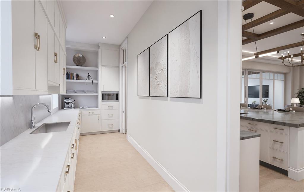 A collaboration between the area’s most respected luxury teams—Toscana Homes, Stofft Cooney Architects, and W Design—this new construction estate blends impeccable craftsmanship with striking, timeless design in one of Naples’ most coveted locations. The home offers 6 bedrooms, including two full primary suites—great for multigenerational living or long-term guests. Five suites sit upstairs, each with its own bath, arranged around a large upper-level living room that functions as a private retreat separate from the main floor. The kitchen features custom Soho cabinetry, Wolf/Sub-Zero appliances, and a fully equipped butler’s pantry. A first-floor club room with a wine feature wall opens directly to the outdoor living areas, giving the main level an easy indoor/outdoor flow. The southern exposure pool area gets sun all day and includes a generous covered lanai for dining and lounging. The corner lot allows for an unusually large landscaped side yard—rare for Aqualane Shores and works well for kids, pets, or added recreation space. Additional details include a 3-stop elevator, 3 car garage with a dedicated golf-cart entrance, full-house generator, and an 11-foot elevation. Set in the most walkable part of Aqualane Shores, the home puts the beach, 3rd Street’s shops and restaurants, and direct Gulf access all within easy reach. A thoughtful, well-executed home from an award-winning team, built for both everyday living and effortless entertaining. Estimated completion Q1 2026.