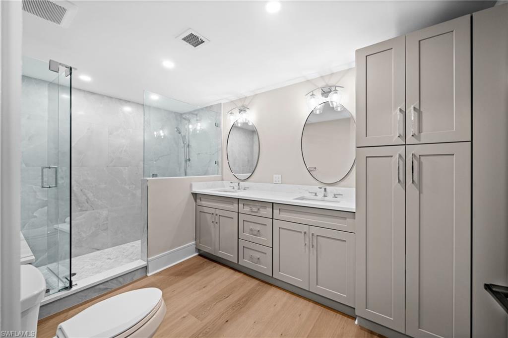 Welcome to this updated 2-bedroom, 2.5-bath first-floor residence in the well-located Dorchester, a high-rise within the highly desirable Pelican Bay community. This spacious 1,741 sqft home features a split-bedroom floor plan, 12-foot ceilings, new coastal-inspired wide-plank flooring, and refreshed bathrooms, including two en-suite layouts and a newly finished powder room. The kitchen has also been renewed, and modern lighting and fans have been installed throughout. Priced below many comparable Pelican Bay units, this residence offers one of the most convenient walks to the Pelican Bay South Beach Club. Residents can enjoy a short stroll of less than half a mile along the mangrove boardwalk to the private beachfront restaurant and bar, complete with chair and umbrella service, bypassing the need for the tram. Dorchester residents also enjoy on-site amenities such as a fitness center, pool and sun deck, remodeled social room, outdoor grilling area, and an active calendar of events, all easily accessible from this first-floor unit without using an elevator. Newly installed roof and backup generator. Pelican Bay ownership provides access to a full resort-style environment, including: - Private tram access to three miles of white sand beaches with full services (chairs, umbrellas, kayaks, and sailboats) and members-only beachfront dining at two open-air coastal kitchens. - Two tennis and racquet centers with leagues and instruction, new pickleball courts, and a wellness center. This renovated condominium is a unique opportunity to enjoy the complete Naples luxury lifestyle.