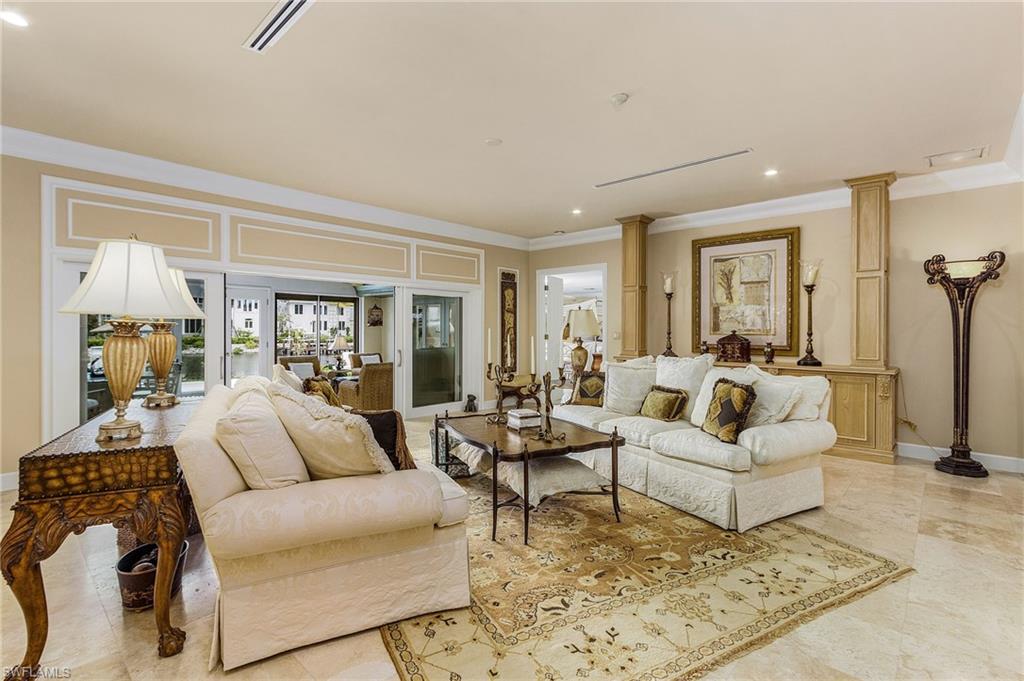 Exquisite Port Royal estate pool home, nestled along the highly sought-after Galleon Drive, offering incredible wide water Western sunset views, and unobstructed access to the Gulf. Can accommodate 55 ft boat, 1000 yards to the beach. Bright and sunny interior showcasing exceptional "old world" architectural detailing with classic and comfortable furnishings. Gourmet kitchen, stainless steel appliances, granite countertops, marble and wood flooring, bedrooms have carpet. The pool was professionally refinished in 2021, and a new 24x24 marble tile deck has just been installed, along with a brand-new pump and heater, creating a pristine and fully updated outdoor oasis. Easy walk or bike to the beach or 3rd St. Experience boutiques and top-tier restaurants along the coveted 5th Ave and 3rd St. S., and Naples' pristine, white sandy beaches, just moments away. Experience the epitome of luxury living in Port Royal, just steps from the newly reimagined Port Royal Club—now under construction and poised to become one of the most exclusive, architecturally significant beachfront clubs in the country. This residence is eligible for Port Royal Club membership. The redesigned Club will offer world-class amenities including Gulf-front dining, elevated fitness and wellness facilities, private poolside cabanas, and refined social spaces that enhance the unparalleled coastal lifestyle Port Royal is known for. This coveted location provides exceptional walkability, premier beach access, and the prestige of living within Naples’ most elite waterfront enclave. Opportunities in this area are exceedingly rare and highly sought after.