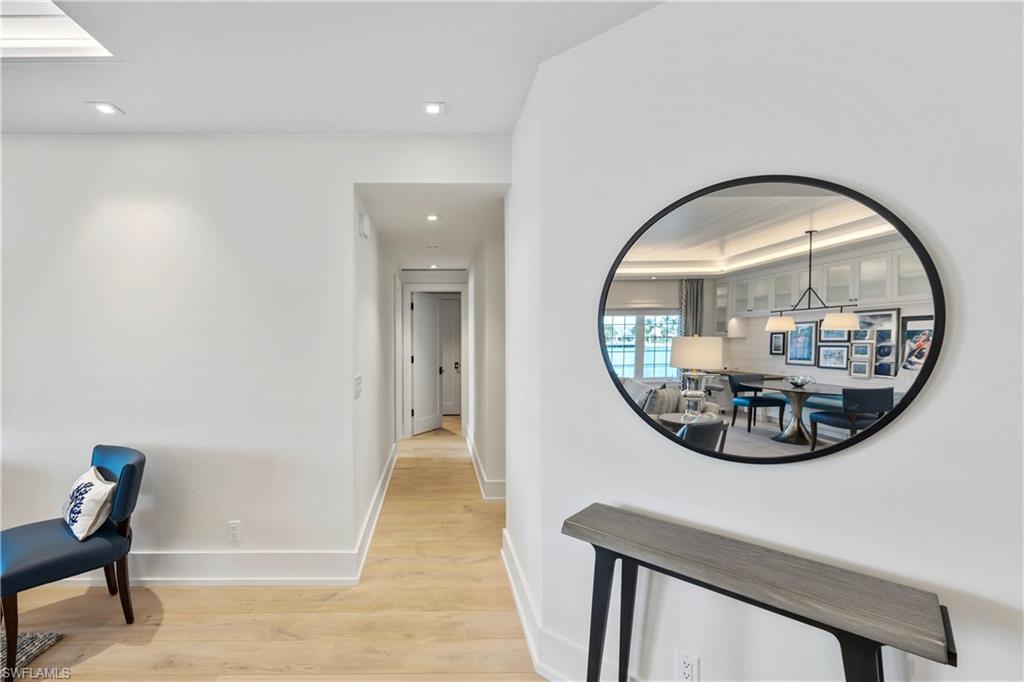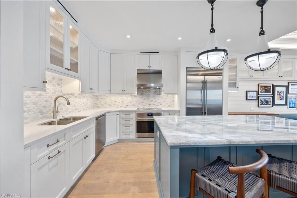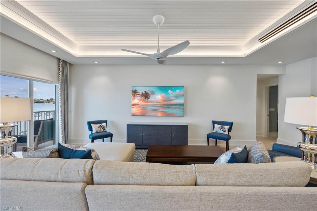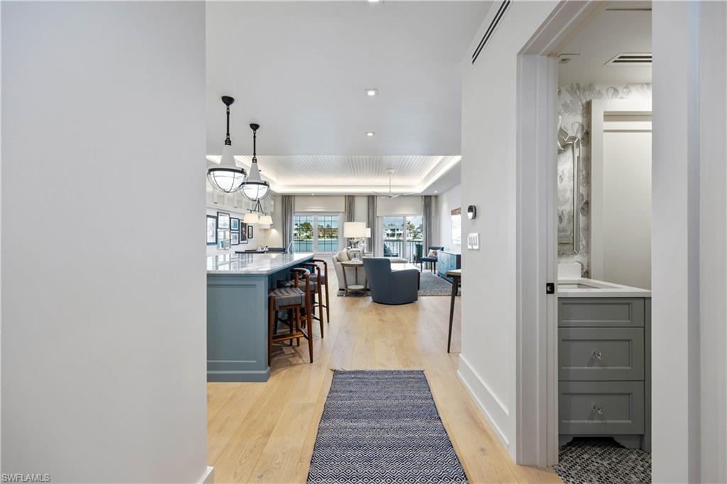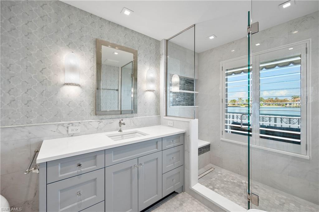 This stunning 3-bedroom, 3-bathroom residence offers an exceptional blend of elegance, comfort, and prime waterfront living in the Park Shore community of Venetian Isle. Featuring breathtaking water views, this meticulously designed condo showcases engineered wood flooring and recessed lighting throughout the living areas of its open-concept layout. Unobstructed eastern exposure provides beautiful sunrises over Doctors Bay, and you can enjoy watching dolphins and boaters pass by your balcony from morning to evening. All residences and community buildings now feature freshly painted exteriors, and the community's surrounding seawalls have recently been updated for enhanced durability and appearance. Completely remodeled by New Haven Builders and professionally decorated by Pure Design of Naples, this residence reflects exceptional attention to detail with no expense spared. The villa is being offered fully furnished! The kitchen boasts custom cabinetry, an illuminated quartzite island countertop with a breakfast bar, Sub-Zero and Wolf appliances, a built-in wine cooler, and a whole-home Kinetico water filtration system. Relax at your dining banquette, surrounded by soft coastal tones, seaside shiplap finishes, an elevated custom tray ceiling, and tranquil bay views. Create your ideal comfort level with the villa's two HVAC systems, each offering integrated dehumidifiers to ensure perfect comfort. The main living area HVAC system also includes an air purification system. If you prefer the fresh salt air, simply open your impact-rated casement windows and sliding glass doors. The guest bedroom/den features grasscloth wallpaper and plantation shutters for a cozy retreat. Bay views and grasscloth wallpaper continue into the spacious primary suite, which offers balcony access. Two walk-in closets provide generous space for newly acquired shopping finds. The spa-like primary en-suite bath features a striking waterfall tile design overlooking the freestanding soaking bathtub, as well as a spacious walk-in shower — both offering beautiful bay views. Residents benefit from pedestrian beach access and boat access to the Gulf of Mexico via Doctors Pass, with boat slips available for lease. This prime location is just moments from The Village Shops on Venetian Bay, offering casual and fine dining as well as upscale shopping. Experience luxury waterfront living in one of Naples' most unique communities!