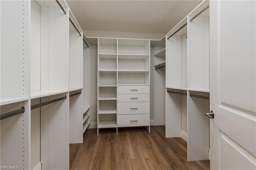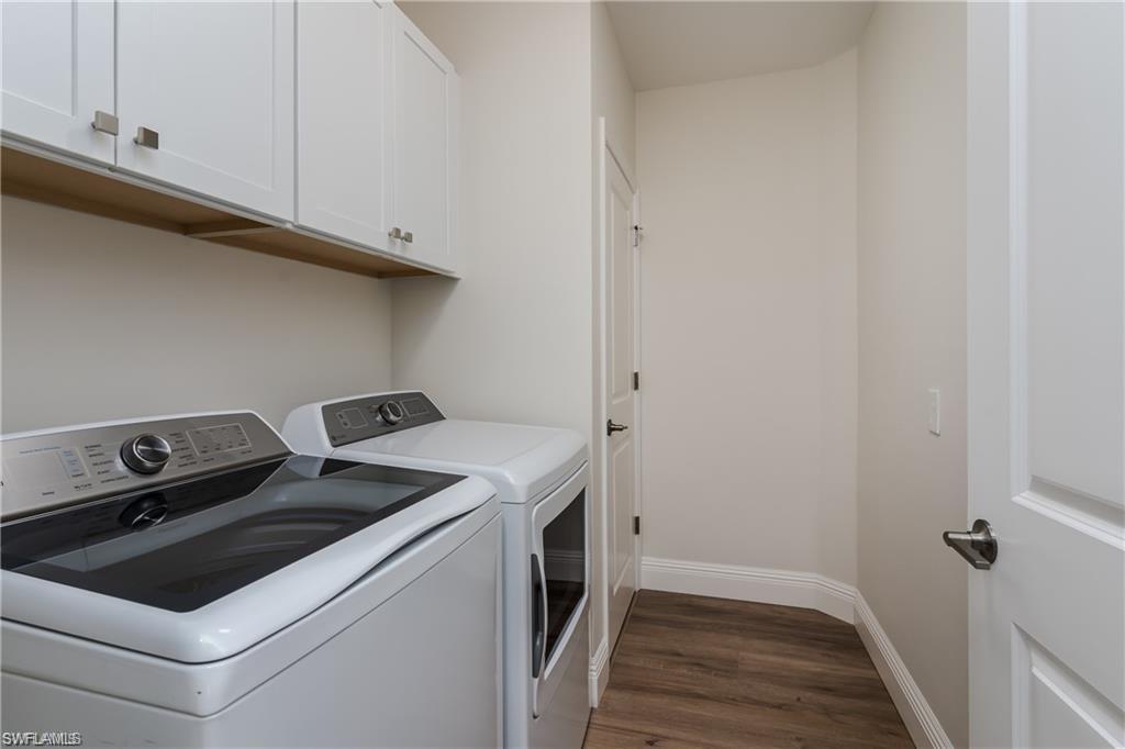 Staged photos. Enjoy ultimate privacy in this beautifully appointed FIRST floor, END unit residence in the GATED community of Seychelles. Built in 2023, this light-filled two bedroom, two bath, 1 CAR GARAGE condominium features an OPEN floor plan with all HARD SURFACE floors, IMPACT-RATED Windows AND Doors, and modern finishes throughout! Inside you will find luxury vinyl plank flooring, Remote activated MOTORIZED shades on the Sliders, Wood Plantation Shutters, TALL Baseboard, and many recessed lights. The UPGRADED Kitchen features 42" White Shaker style cabinetry, Quartz Countertops, and a Tile Backsplash. The adjacent Dining area and Living Room look out to a screened lanai, offering peaceful Preserve views, and a place to relax and enjoy the fresh air without bugs to pester you. The owner's suite is a private retreat featuring a spa-style en-suite bath with a DUAL SINK vanity of Quartz, a beautiful Walk-in shower, with FRAMELESS Surround, and a CUSTOM-built Walk-in CLOSET! The Guest Bedroom ALSO has a CUSTOM-built Walk-in Closet! The guest bath has a Tub/Shower combo. The Laundry room has GE Appliances, and Wall cabinets above them. The LOW DUES cover almost everything except Electricity!! Residents of Seychelles enjoy resort-style amenities, including a large community pool, hot tub/spa, well-equipped fitness center, and a beautiful clubhouse surrounded by tropical landscaping and palm trees. Located just a short drive from 5th Avenue South, 3rd Street South, Tin City, the Naples Botanical Gardens, Naples Zoo, Baker Park, Cambier Park, the Gordon River Greenway, the Naples Philharmonic, countless golf courses, and the National Pickleball Center, this home offers easy access to the best of Naples’ dining, shopping, culture, and recreation — as well as the pristine white-sand beaches of Naples and Marco Island.