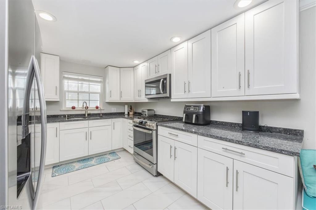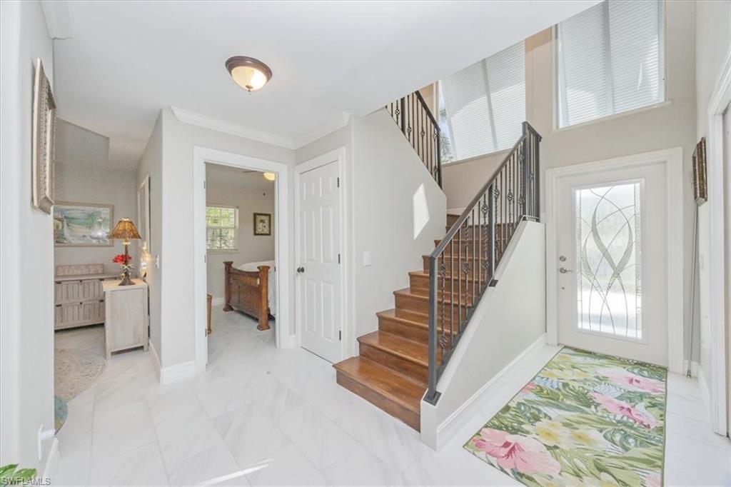 This turnkey furnished 4+ bedroom home sits on an elevated private lot in a convenient and desirable area of Marco Island. The owners have done numerous high-ticket updates to the residence including the metal roof, a renovated kitchen featuring stainless steel appliances, propane tank for the gas stove, tile flooring throughout the first floor, redone half and guest bathrooms, new water heater and ceiling fans on the lanai and in the living room. The hot tub was added in 2022 and is also included in the sale. Exterior enhancements include a new upper deck, cage and gutters, fully shuttered on all openings, an impact resistant front door, new pool heater, landscape irrigation and a fenced area perfect for parking a small boat or other watercraft. The interior and exterior of the home was also recently painted. The home has a wonderful welcoming feel with a cozy breakfast nook overlooking the tranquil lanai, a remote-controlled fireplace in the living room, Sonos sound system downstairs and hardwood floors upstairs. The lanai is perfect for dining, relaxing and entertaining while enjoying the lovingly cared for orchids and landscaping and the podocarpus hedge provides extra privacy. Move-in ready and full of character—come make memories here.