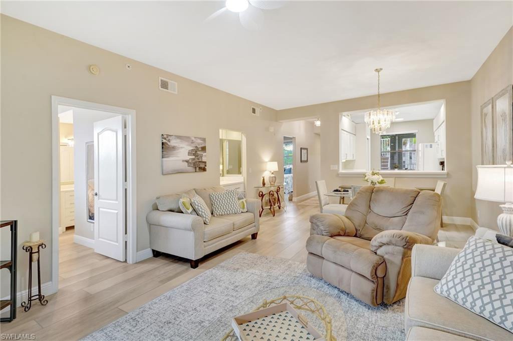 Light, bright, and beautifully updated! This 2-bedroom, 2-bathroom second-floor end unit in Heathermoor III offers the perfect blend of comfort and convenience and comes mostly furnished! As an end unit, the condo enjoys additional windows and abundant natural light, complemented by fresh neutral paint and luxury LVP flooring throughout. Both bathrooms feature updated vanities, with the primary bathroom showcasing an upgraded walk-in shower. Major mechanical updates include a new A/C in 2020 and a new water heater in 2025, giving you peace of mind. Located on the second floor of a three-story building, the unit also benefits from a convenient elevator, making access easy. Situated within Highland Woods Golf & Country Club, a highly sought-after bundled golf community, you’ll enjoy a wealth of recently enhanced amenities including a resort-style pool, outdoor cabana and bar, six pickleball courts, and updated Har-Tru tennis courts. Additional amenities include bocce, a state-of-the-art fitness center, and of course—championship golf. All of this is ideally located just 25 minutes to RSW Airport and only minutes from shopping including The Promenade, Coconut Point Mall and the Shops at Mercato. You're about 4 miles from the beautiful sands of Bonita Beach and the Gulf of America. Whether you’re seeking a seasonal retreat or a full-time home, this condo delivers exceptional value, comfort, and lifestyle!