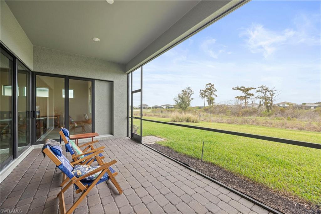 Highly upgraded Pulte Stellar model home on a premium preserve lot, built in 2023, this stunning 3-bedroom plus den home offers immediate move-in without the wait or uncertainty of new construction. This 2,493-sq-ft home on a quiet cul-de-sac features extensive structural and storm-resilient upgrades that distinguish it from base models, including hurricane impact windows, a zero-corner sliding glass wall, and tile flooring throughout for durability and low maintenance. The expansive preserve view creates a seamless indoor-outdoor living experience. The fully air-conditioned and insulated garage features epoxy flooring and the 4-ft garage extensions provide exceptional storage and everyday functionality. Additional highlights include a tankless water heater, trey ceilings, upgraded kitchen cabinetry and kitchen built-ins, custom closets and pantry, and 3 thoughtfully finished bathrooms with extended tile and glass enclosures. A similarly configured Stellar with today’s base pricing, lot premium, and upgrades would approach $1M+ and require a lengthy build timeline. This home delivers the benefits of new construction—without the delay. Residents enjoy an elevated, resort-inspired lifestyle with access to an exceptional suite of amenities, including indoor and outdoor pickleball and tennis courts, basketball, a state-of-the-art fitness center and movement studio, café, children’s play area, and a beautifully designed resort pool with private cabanas. Perfectly positioned just minutes from a newly developed shopping plaza with Publix, upscale dining, and everyday conveniences, the community also offers effortless access to RSW International Airport, FGCU, and Southwest Florida’s celebrated Gulf beaches.