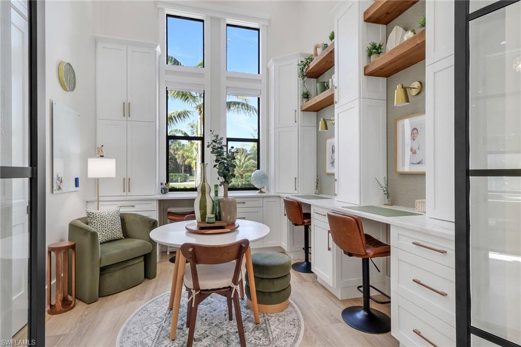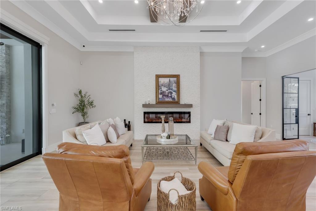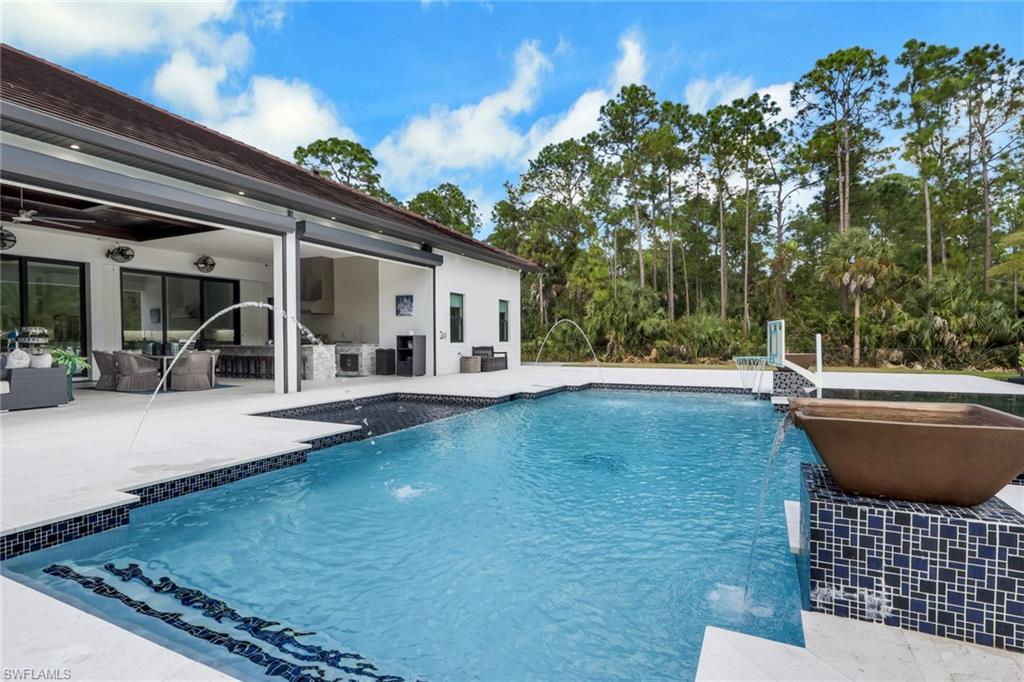 Come experience true Naples luxury on 2.5 private acres. This custom built estate offers an exceptional blend of craftsmanship, functionality, and resort style living featuring over 3,800 sq. ft. of living space and 5,700 sq. ft. total. Inside, you’ll find 12 ft. ceilings, elegant wood crafted details, plank tile flooring, and a custom chef’s kitchen with cabinetry to the ceiling, Pompei quartz countertops with waterfall edges, double islands, and an oversized walk in pantry with generous shelving. The home also includes beautifully designed indoor and outdoor entertainment centers, each with built in fireplaces for year round comfort and ambiance. A 1,000 gallon propane tank services all major appliances, adding both convenience and efficiency. Step outdoors to a truly impressive 800 sq. ft. covered lanai overlooking a large custom pool and spa, surrounded by a massive 75x45 pool deck; perfect for entertaining, events, or relaxing in total privacy. The 3 car garage offers 10 ft. garage doors and plenty of room for vehicles, toys, or storage. Beyond the pool, this property features a rare and extraordinary addition: a 60x80 workshop with a 20x60 lean to, three phase power capability, and a two story air conditioned loft ideal for hobbies, business operations, a home gym, or storage. The workshop also includes two full bathrooms, its own drain field, and RV hookups with both 30 amp and 50 amp service perfect for guests, travel lovers, or additional accommodations. This home offers a lifestyle of comfort, space, and privacy while being just minutes from the best of Naples. Come experience Naples living at its finest where luxury meets privacy and endless possibilities.