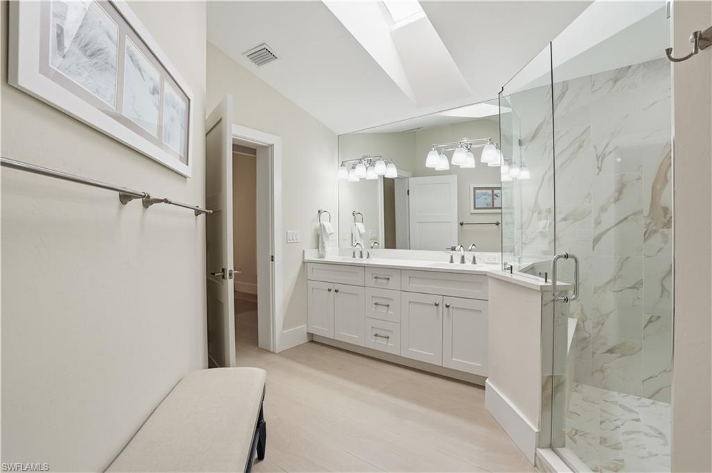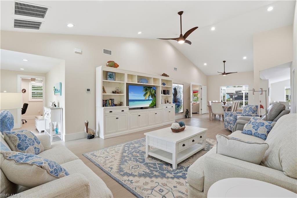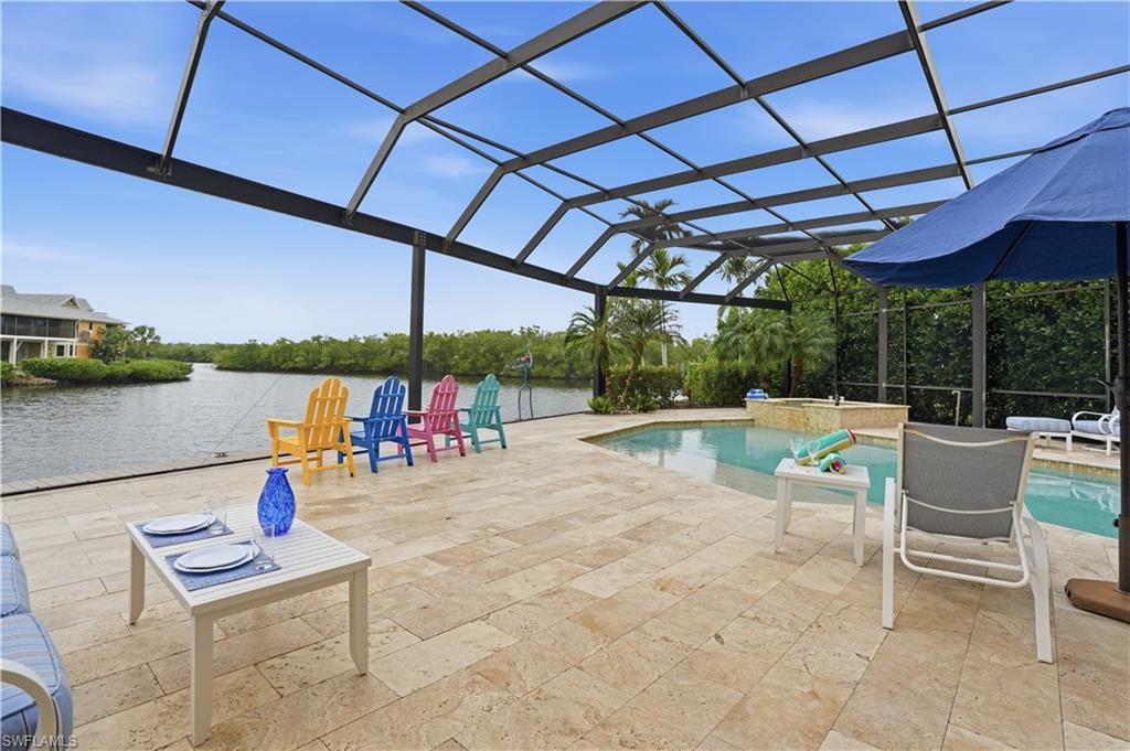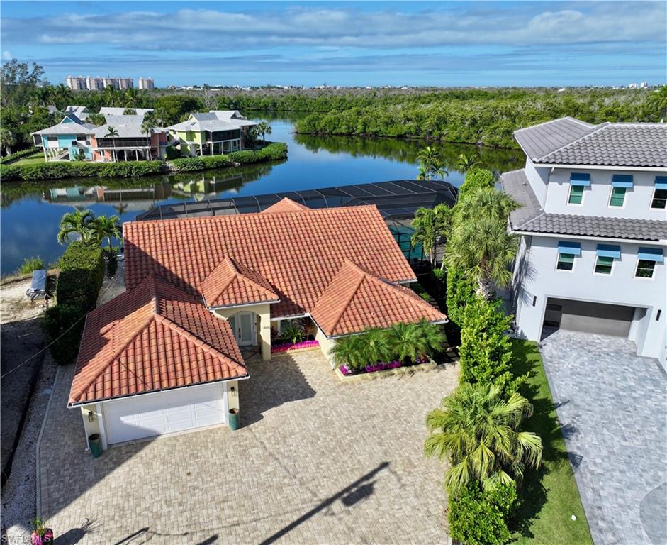 Live like you’re on vacation every single day at this bay-front paradise—just minutes to the sugar-sand shores of Bonita Beach, and a short boat ride to the Gulf! Tucked away on a low traffic cul-de-sac, this meticulously maintained waterfront residence delivers the ultimate SW Florida lifestyle: boating in your backyard, panoramic sunset views, and resort-style outdoor living wrapped around a massive lanai with HEATED POOL & SPA. The oversized pavered driveway gives plenty of parking for you and your guests. Step inside to an open, airy floor plan designed for comfortable modern living. Recently remodeled top to bottom, this home offers 3 bedrooms, 4.5 baths, and a dedicated office, all anchored by a stunning kitchen with a nine-foot island and high-end appliances—perfect for entertaining or casual nights in after a sunset cruise. The impressive primary suite truly feels like a private retreat, featuring two full bathrooms, a laundry, and a dressing area. Guests are spoiled too, with ensuite bedrooms including a SECOND LAUNDRY in one of the guest suites for added convenience. This includes a Guest suite with its own full bathroom and private entrance outside for added convenience. IMPACT WINDOWS AND DOORS provide peace of mind, while allowing you to enjoy natural light and water views throughout. This home is equipped with an exterior flood BARRIER SYSTEM providing an added layer of protection and peace of mind. Outside is where this home really takes your breath away. With 155 feet of waterfront and a large composite dock with a 10,000 lb COVERED boat lift, you’ll enjoy easy, quick access to the Gulf plus front-row seats to visiting dolphins, manatees, and pelicans. The expansive screened lanai creates an oversized (and spectacular!) outdoor living and play space—ideal for hosting, lounging, or floating the day away in the heated pool and spa. All of this, less than one mile to Bonita Beach and a short drive to Southwest Florida International Airport, Fort Myers Beach, and Naples shopping and dining—this is truly paradise living on the water. Schedule your private showing today!
