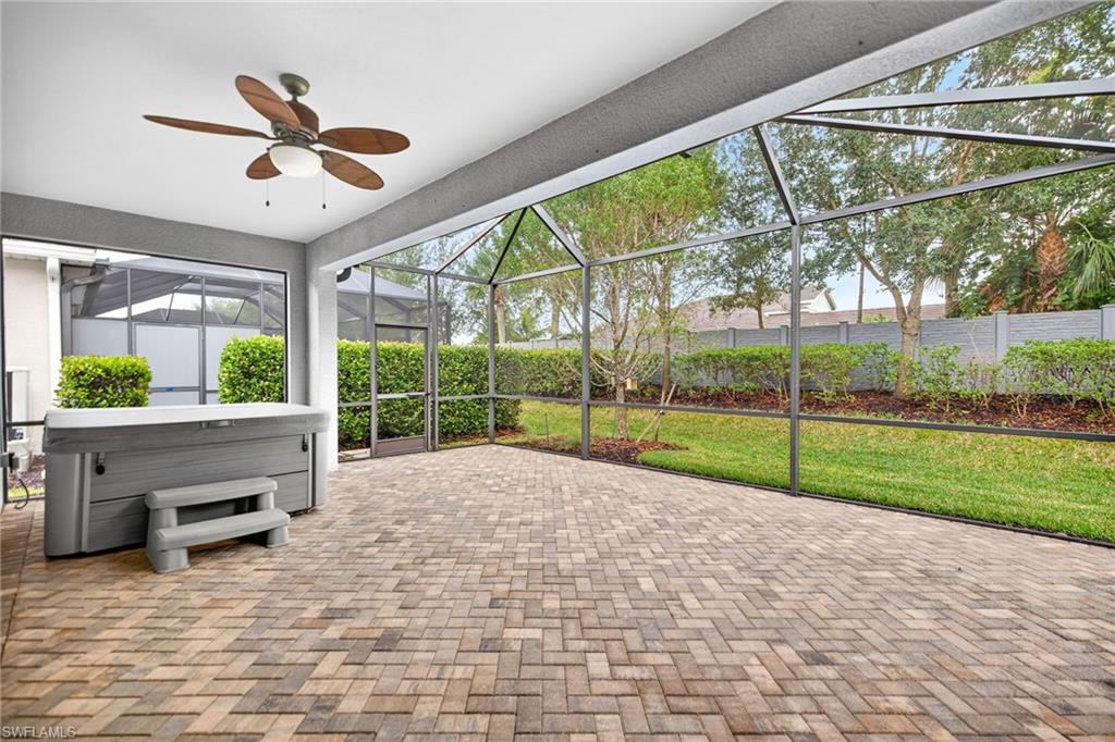 Welcome to the home you’ve been waiting for! Located in the serene, gated community of Bonita Landing, this impeccably maintained 3-bedroom plus den, 3-bathroom residence offers stylish, modern living at its finest. Built in 2020, this like-new, move-in-ready home features an oversized extended lanai complete with a private hot tub, perfect for relaxing or entertaining. The interior was just fully painted, the carpets were professionally cleaned, and a UV light has been installed on the HVAC system for enhanced air quality and efficiency. This property is also located in a no flood zone, offering added peace of mind. Inside, the open-concept kitchen shines with an entertainer’s island, walk-in pantry, upgraded backsplash, and like-new appliances. The spacious primary suite offers two walk-in closets and a luxurious en-suite bathroom with dual sinks, a soaking tub, and an oversized walk-in shower. Two additional bedrooms are thoughtfully separated to provide privacy and are conveniently located near two full bathrooms. Community maintenance fees include high-speed internet, cable TV, and lawn care—everything you need for effortless, low-maintenance living. Schedule your showing today!