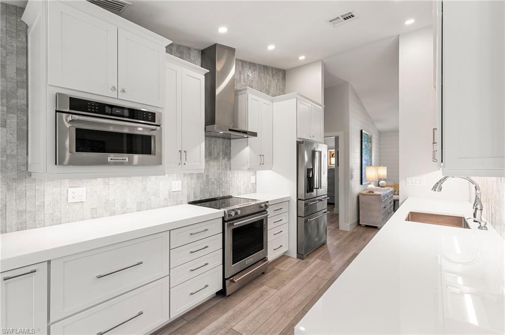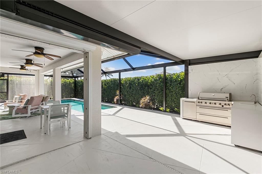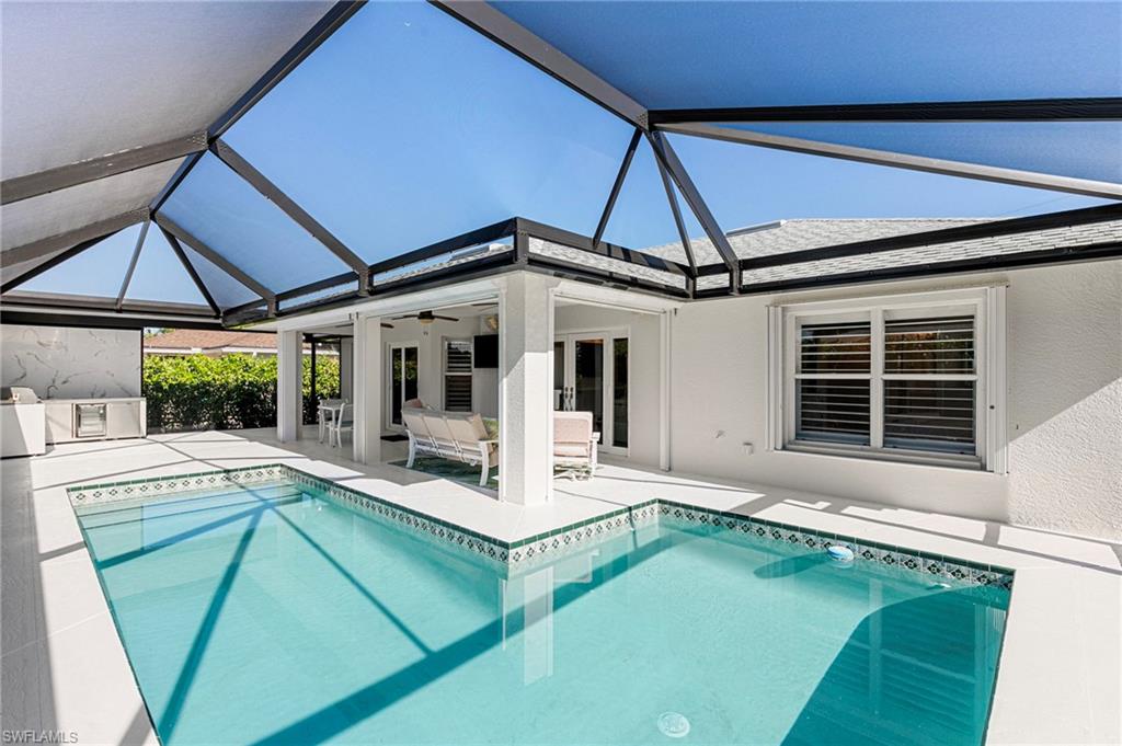 Located in the heart of Marco Island, this beautiful move-in ready 3 bedroom 2 bath home has been remodeled inside and out. Relax and take in all day sunshine from your private heated swimming pool, and enjoy the brand new expanded covered lanai area that offers a stunning built-in outdoor summer kitchen that is perfect for entertaining. Interior upgrades include new shaker-style cabinetry, Nano Glass countertops, a custom built-in entertainment center, CoreTech luxury vinyl plank flooring throughout, updated landscaping, lighting, and fixtures. Additional features include new roof (2021), resurfaced pool, 22KW Generac whole-home generator with 500-gallon propane tank, impact doors, and electric shutters. Close to Mackle Park, the Racquet Center, Resident's Beach, dining, and more. A must see property!