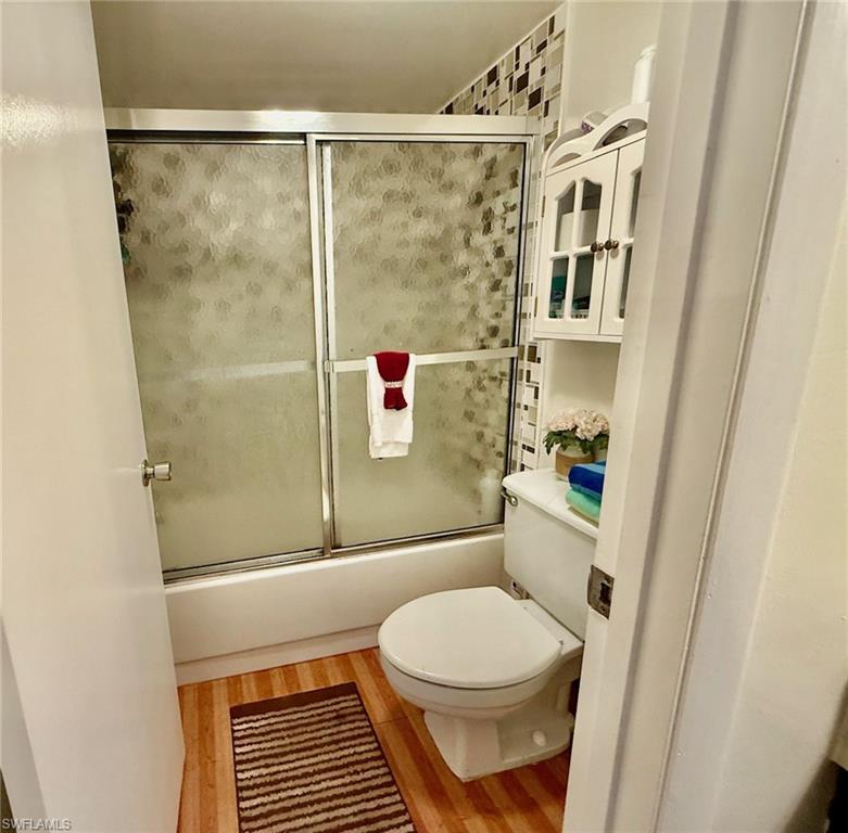 This inviting one-bedroom, one-bath condominium offers a bright and open living space with several appealing features throughout. Located on the second floor of a quiet low-rise building, this residence provides excellent privacy and comfort. The spacious living room flows seamlessly into a dedicated dining area, creating an ideal layout for everyday living or entertaining. Attractive laminate wood flooring adds warmth and easy maintenance, while the kitchen includes a convenient breakfast bar and washer and dryer tucked neatly within the kitchen area for effortless laundry access. A screened-in porch at the rear of the home overlooks the beautifully maintained golf course, offering a peaceful and relaxing outdoor retreat. The generously sized bedroom includes a large closet, and the bathroom remains in its original condition, providing an opportunity for personal updates if desired. Residents enjoy access to a community pool and the option to join the Lakewood Country Club, where additional amenities such as golf, tennis, pickleball, and clubhouse dining are available with no mandatory membership—play as you go. The condominium also includes a dedicated covered carport and ample guest parking. Its prime location places you just minutes from downtown Naples, the beaches, Publix, and nearby shopping and dining options. A great opportunity for a first-time buyer, seasonal resident, or investor seeking strong rental potential. Easy to show and ready for its next owner.