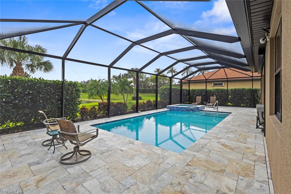 Experience true FLORIDA LUXURY LIVING with a LARGE SALTWATER HEATED POOL and SPA in this beautifully upgraded home, perfectly positioned on a quiet cul-de-sac in the 55+ Del Webb Naples community. Better than new construction, this enhanced PINNACLE floor plan (similar to the STELLAR) delivers the elevated lifestyle today’s buyers are searching for. This 3-bedroom, 3-bath plus den home showcases REMODELED KITCHEN AND BATHROOMS with all NEW Cabinets, PLANTATION SHUTTERS, DESIGNER LIGHTING, upgraded ceiling fans, and fresh interior and exterior paint for a crisp, modern look. The PRIMARY SUITE is a luxurious retreat, offering an extended walk-in shower and dual sinks. The CHEF’S KITCHEN is completely refreshed with BRAND NEW quartz countertops, upgraded appliances, BEVERAGE CENTER, a new sink and faucet, and thoughtfully designed for seamless entertaining. Additional upgrades include IMPACT GLASS WINDOWS, floor-to-ceiling tile in the bathrooms, extra recessed lighting, and TILE FLOORING throughout. Step outside to your private oasis - an expansive screened-in lanai featuring a SALTWATER POOL and SPA, super screens, and accented by elegant marble pavers. Enhanced landscaping provides added privacy around the pool area. Storm Smart ELECTRIC HURRICANE SCREEN on the lanai keeps your furniture clean and dry during storms. The oversized 4’ EXTENDED GARAGE includes epoxy flooring and overhead storage, providing ample space for a golf cart, workshop, or additional storage needs. You will have a piece of mind with a whole house portable 13,000 kw GENERATOR. This home comes with the SOCIAL MEMBERSHIP, but take note GOLF LOVERS, Panther Run Golf Club offers optional MEMBERSHIPS with premium golf experiences just steps from your backyard. In Del Webb Naples, you’ll enjoy WORLD-CLASS AMENITIES that rival luxury resorts: dine at the Rusty Putter Restaurant, soak in the RESORT-STYLE or LAP POOLS, break a sweat in the state-of-the-art FITNESS CENTER, and play your way through PICKLEBALL, TENNIS, bocce, billiards - even a top-tier GOLF SIMULATOR! Need groceries, church, or a bite to eat? Just hop in your golf cart and cruise into town - Publix and the heart of Ave Maria are just minutes away. This isn’t just a home - it’s a LIFESTYLE UPGRADE in one of Southwest Florida’s most vibrant 55+ communities. Don’t miss your chance to live where fun, fitness, and friendships flourish year-round!