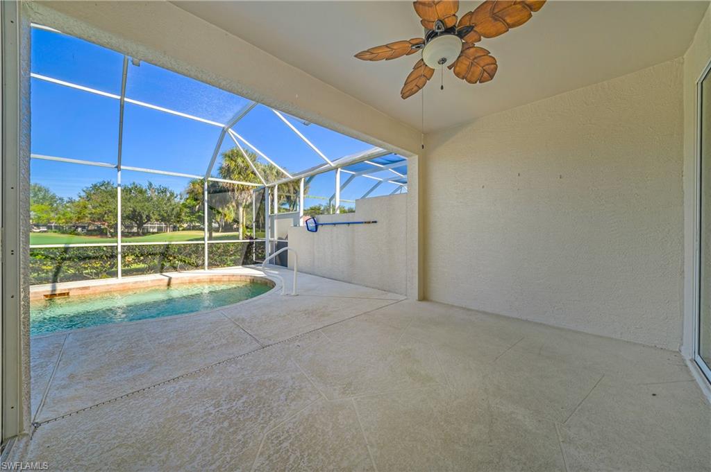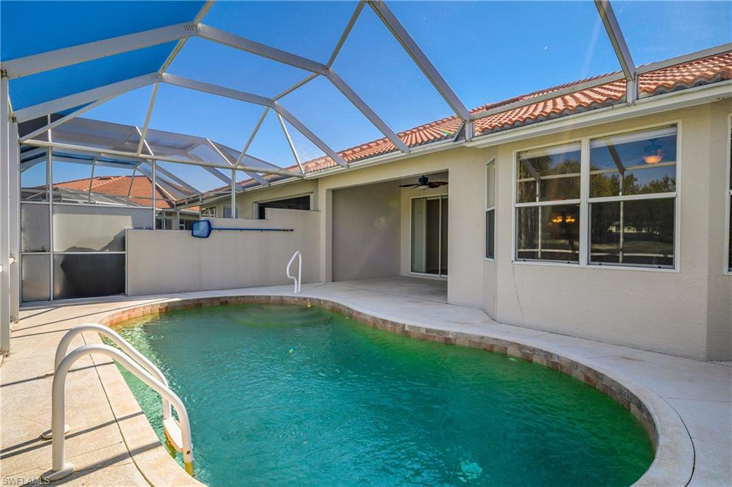 Welcome home to this spaciously designed end unit Villa flooded with natural light and great views of the golf course and lake. 2-Bedroom + DEN, 2-bath VILLA with a 2-Car garage, and screened in POOL with plenty of space for entertainment. Over $80,000 of recent upgrades! Just painted inside $2,500.00 *New Flooring installed $8,500.00 (2025) *All tile grout cleaned & Sealed $1,500.00 (2025) *New Pool pump (2023) *New $65,000.00 Tile Roof (2020) *New A/C unit $7,500.00 (2025) Heritage Greens is a pet friendly community with amenities including tennis and pickle-ball, multiple community pools, a fitness room, basketball court, playground, clubhouse, and on-site property management. The Arrowhead Golf Course is a public facility offering both membership packages and pay-as-you-play options, with a convenient pub for post-game refreshments or simply grab a bite to eat. Conveniently located in North Naples with easy access
