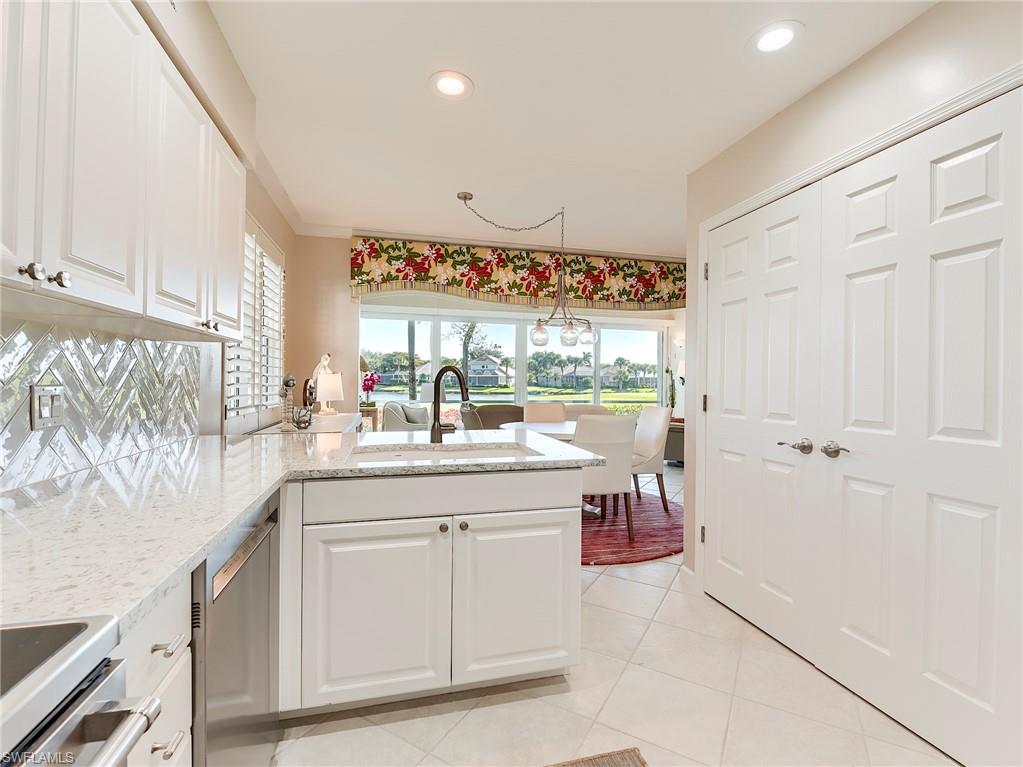 Beautifully renovated, this rare find in the Morningside neighborhood in Shadow Wood at the Brooks has it all. Gorgeous golf and water view from your lanai with brilliant morning sun. UPDATED kitchen with gorgeous quartz countertops, white cabinetry and beautiful backsplash. Impact glass throughout. Beautiful new flooring and renovated baths. LED lighting and new fan fixtures, new hardware throughout. Garage is an organizer’s dream with wall and ceiling racks and a beautiful epoxied floor. Condo association recently replaced all roofs, painted the exterior and freshened the landscaping for the community. Fiber to the home provides lightning fast internet and television. Member owned Shadow Wood Country Club offers 54 holes of championship golf, 2 club houses, 8 Har Tru tennis courts, bocce, outdoor fire pits, access to a private beach club, fitness center, full-service spa, pickle ball, and private restaurant. New Lifestyle Amenity Center will add 2 resort style pools with zero-depth entry, lap lanes and dedicated kids pool, poolside restaurant & bar, 6 indoor pickleball courts, new racquet pro shop and a grab & go cafe. Great location close to shopping, airport, beaches and much, much more. THIS HOME IS A MUST SEE!