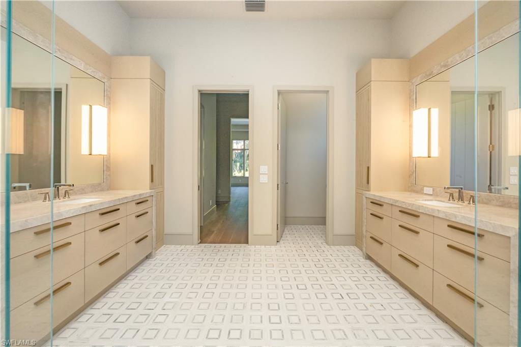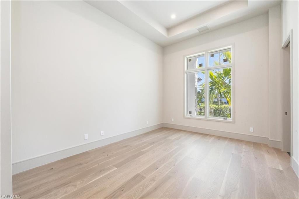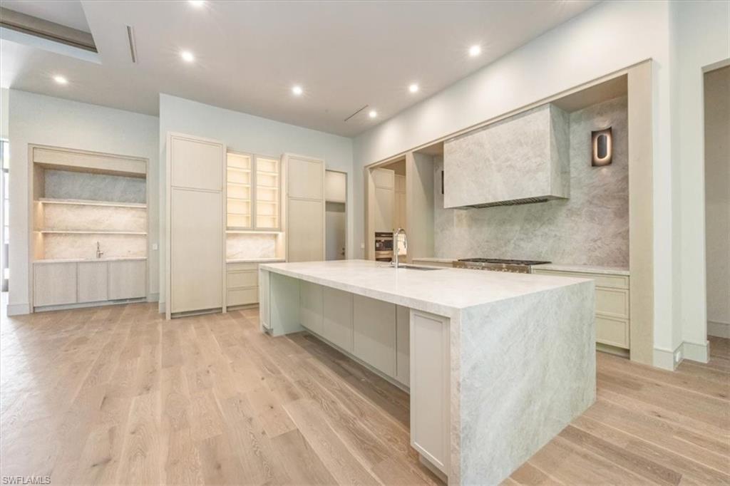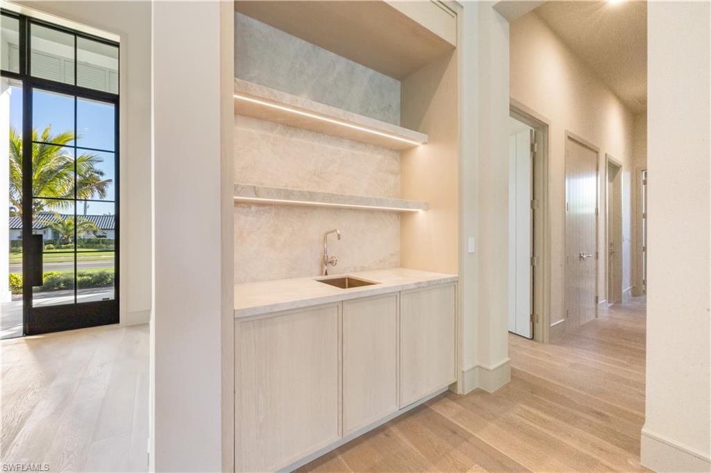 Completed in 2026, this exceptional Park Shore residence with interiors by award-winning Carrie Brigham Design. Offering nearly 4,000 square feet of refined living space, the home features four bedrooms plus a den, six bathrooms, and a four-car garage with optional lifts, all set on an oversized, nearly half-acre lot. Open-concept living and dining areas feature soaring ceilings, abundant natural light, and seamless transitions to expansive outdoor living spaces. The gourmet kitchen is appointed with Newstyle custom cabinetry, Wolf, Sub-Zero, Bosch, and Miele appliances, and a fully equipped butler’s pantry designed for elevated entertaining. This is the only home in Park Shore equipped with natural gas, providing enhanced efficiency and performance for cooking, heating, and pool and spa operation. Interior finishes include RWF white oak flooring, premium stone and tile selections, zero-entry showers, designer lighting, and thoughtfully curated millwork throughout. Resort-style outdoor living includes a pool, spa, sun shelf, covered lanai, and outdoor kitchen, enhanced by Magnatrack motorized retractable screens for effortless indoor-outdoor living. Additional features include impact-resistant windows and doors, tankless water heaters, and a Generac whole-home generator. Located just 500 yards away from Seagate beach, this rare offering blends architectural excellence, elevated design, and modern coastal living with a level of infrastructure unmatched in Park Shore.