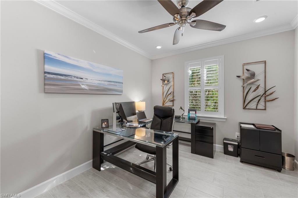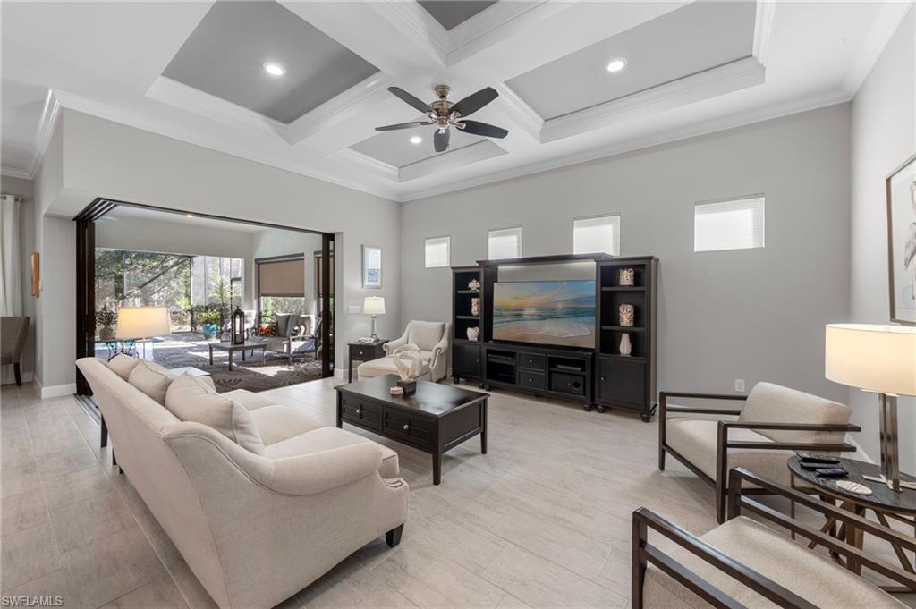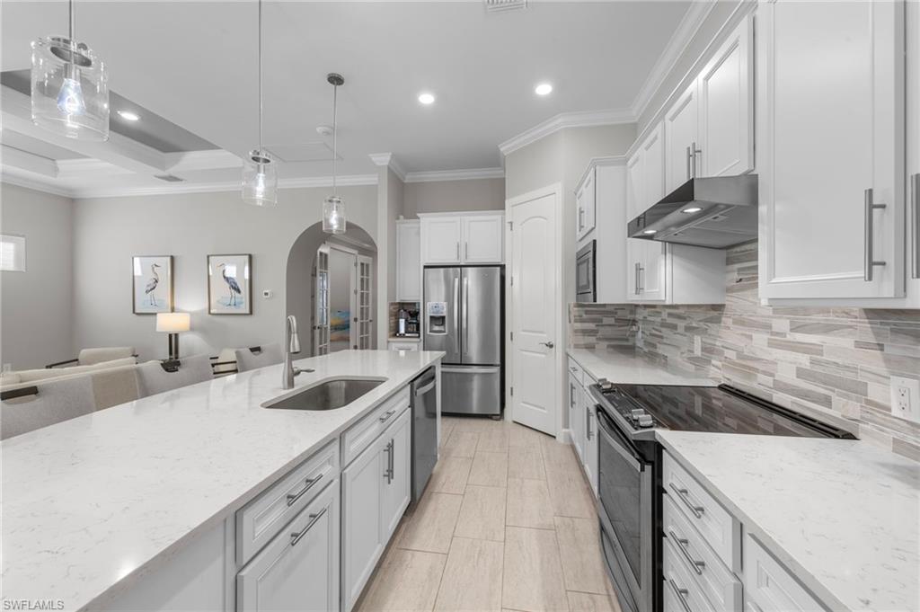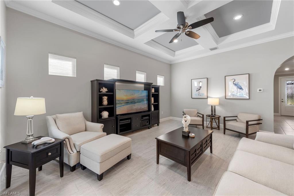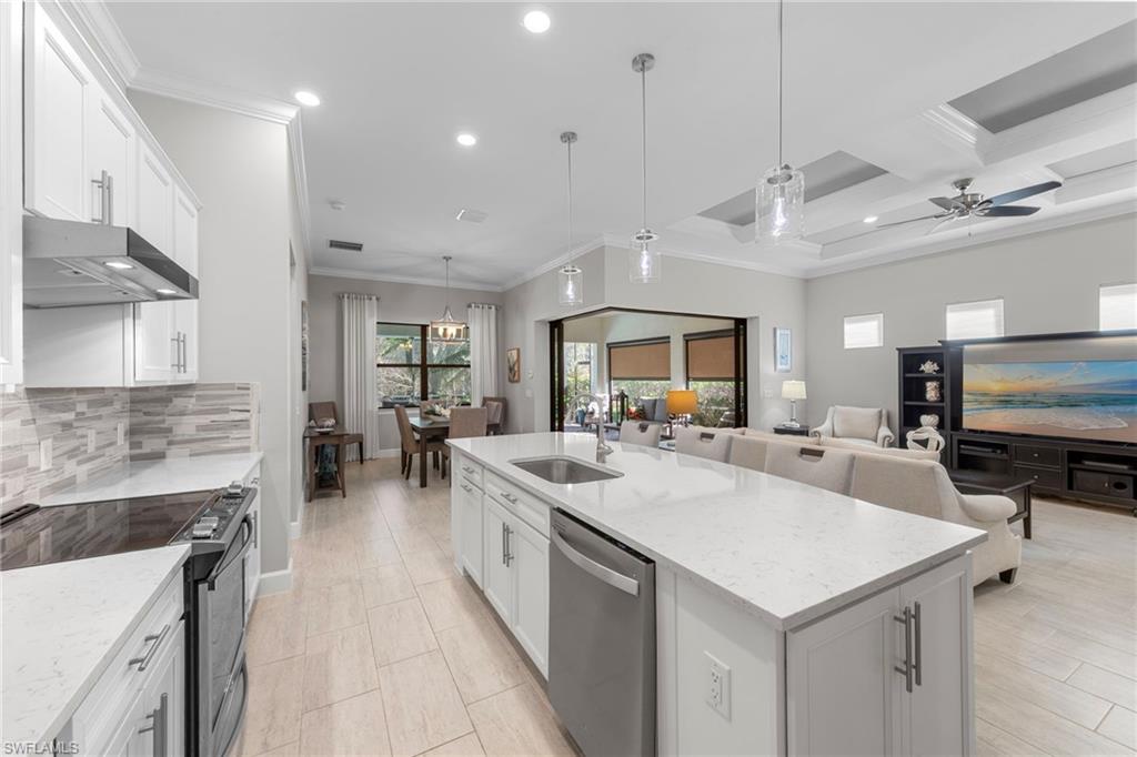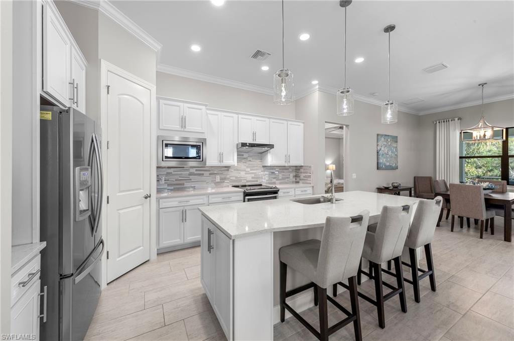 Welcome to Corkscrew Shores. This beautifully maintained and highly desired Summerwood floor plan stands out as one of the few in the community that includes a true three car garage, and this one is even climate controlled. Sitting on an oversized preserve lot, the home offers three bedrooms plus a den, two bathrooms, and a sparkling pool that creates the perfect private outdoor retreat. Inside, the layout feels open and inviting with a kitchen that features 42 inch cabinetry, quartz countertops, stainless steel appliances, an oversized island, and a walk-in pantry. The home is finished with crown molding, a coffered ceiling, and plantation shutters throughout, giving it a polished and timeless look. It is also being offered furnished. Corkscrew Shores is known for its top tier amenities and lakefront lifestyle. Residents enjoy a resort style pool and spa, a full restaurant and bar, a professionally managed clubhouse, fitness center, movement studio, kayak and canoe launch, walking trails, tennis, pickleball and bocce, a pro shop, fire pits, a fishing pier, and multiple gathering spaces overlooking the 240 acre lake. With no CDD fee and one of the strongest amenity offerings in the area, this home is a rare find in one of Estero’s most desirable communities.