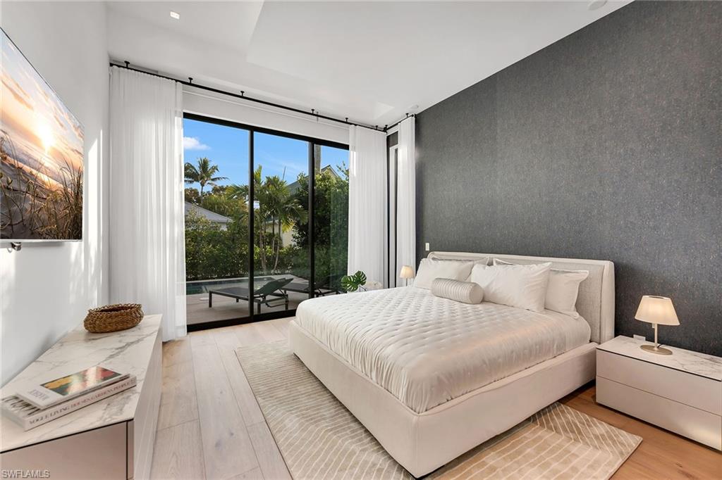 NEW CONSTRUCTION | NEVER LIVED IN | PRIME OLD NAPLES LOCATION. Just completed in 2025 by one of Naples’ most celebrated architectural firms, H-Level, in collaboration with top-tier international design teams and Alair Homes of Olde Naples, this breathtaking modern masterpiece sets a new standard for coastal contemporary living, merely blocks to the sugar-sand beaches of The Gulf and a short stroll to iconic 5th Avenue and 3rd Street South shopping and dining districts. Boasting nearly 4,000 square feet of air conditioned living space and over 5,200 square feet of total lifestyle space, this custom coastal retreat can handle endless family and friends for entertaining with Four spacious bedrooms plus a dedicated office/den (or 5th bedroom with custom build-ins), six baths, an oversized 2.5 car garage (perfect for golf cart or Moke), and a seamless transition to the outdoor oasis that is complete with heated pool and spa, summer kitchen and custom water feature. From the moment you arrive, the dramatic two-story foyer with modern staircase and over 20-foot ceiling announces that this is no ordinary residence. Clean lines, floor-to-ceiling impact/hurricane glass throughout, imported European flooring, and a soft neutral palette create an atmosphere of serene sophistication throughout the expansive open floor plan. A gourmet chef's kitchen featuring Miele and Liebherr panel ready appliances offer bespoke sophistication. Lush tropical landscaping surround the oversized 84'x115' corner lot located in the heart of Olde Naples. This rare new-construction offering combines cutting-edge modern architecture with the most coveted walk-to-everything lifestyle in Southwest Florida and is offered fully furnished/turnkey for immediate enjoyment. Will not last long.