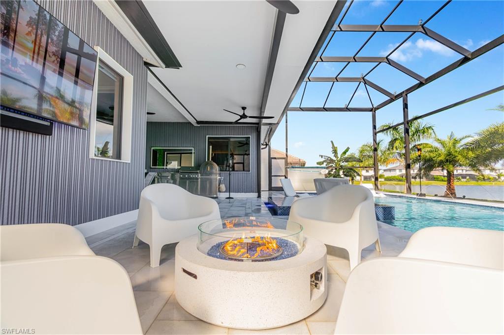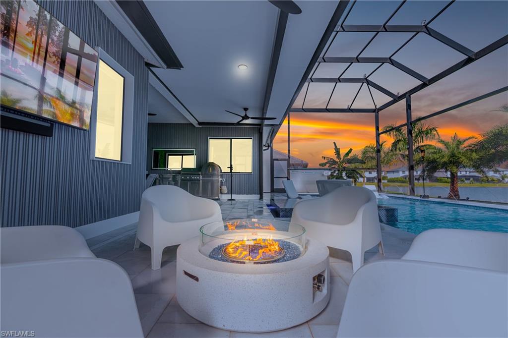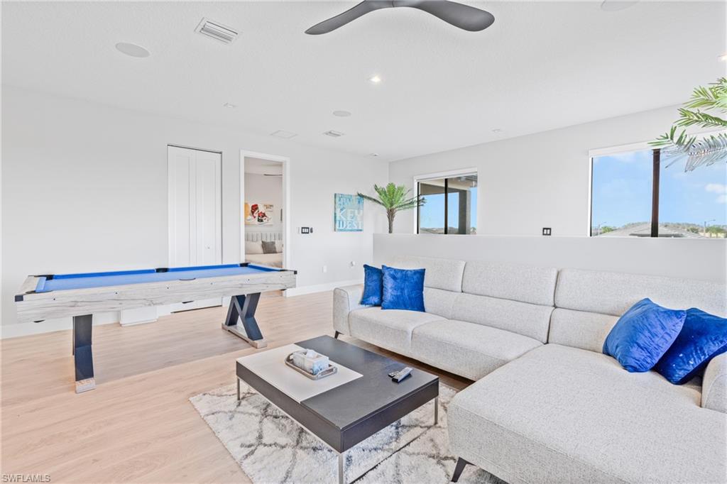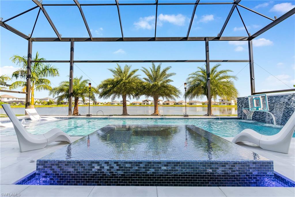 Welcome to your dream home in Ave Maria The property is loaded with upgrades! That features: Garage & Technology: Two (2) EV chargers, a remote garage controller with a security camera, and a widened driveway accommodating three (3) cars. Audio & Environment Control: A three-zone Sonos system (pool area, main living room, and upstairs family area); two (2) Wi-Fi thermostats; and five (5) Wi-Fi light switches, including upgraded dimmer switches throughout all rooms. Private Wine Cabinet. Security System: A comprehensive alarm system including a door camera, three (3) wireless door locks, and a four-camera security system. Propane & Outdoor Living: A 500-gallon propane tank supporting a fire pit, a BBQ grill, and two (2) tiki torches on the pool deck. The property also features an outdoor kitchen area with a wet sink and a wood-burning pizza oven, a completely covered pool deck area with modern outdoor panels, and an installed outdoor TV. - Interior Features: Remote control blinds for all windows, a glass-enclosed wine closet, and a finished Master Closet. The kitchen cabinets and master bathroom mirrors have been upgraded. The master bathroom includes a large tub. Lighting & Airflow: Ceiling fans installed in all five (5) bedrooms, two (2) family areas, and three (3) ceiling fans installed on the pool deck areas. Structural & Exterior: The property is situated on the largest lot size in Maple Ridge. Exterior features include a large pool and jacuzzi with a double-height pool screen lanai area. The pool system includes three (3) pumps, a heater, and Wi-Fi pool control. There is a screen-in balcony and entrance area, and a second-floor balcony area with an installed spiral staircase. Finally, a concrete pathway has been installed along the left side of the house. View the sunset from your spiral upstairs Balcony Sit back and enjoy the sunset by the pool with your family and friends!