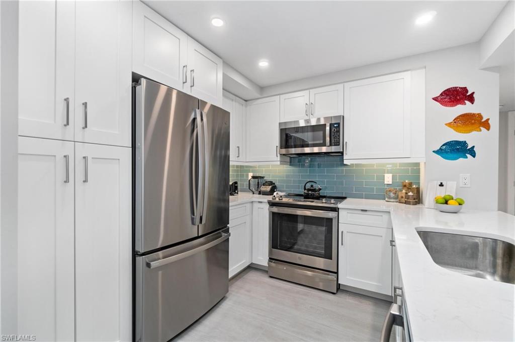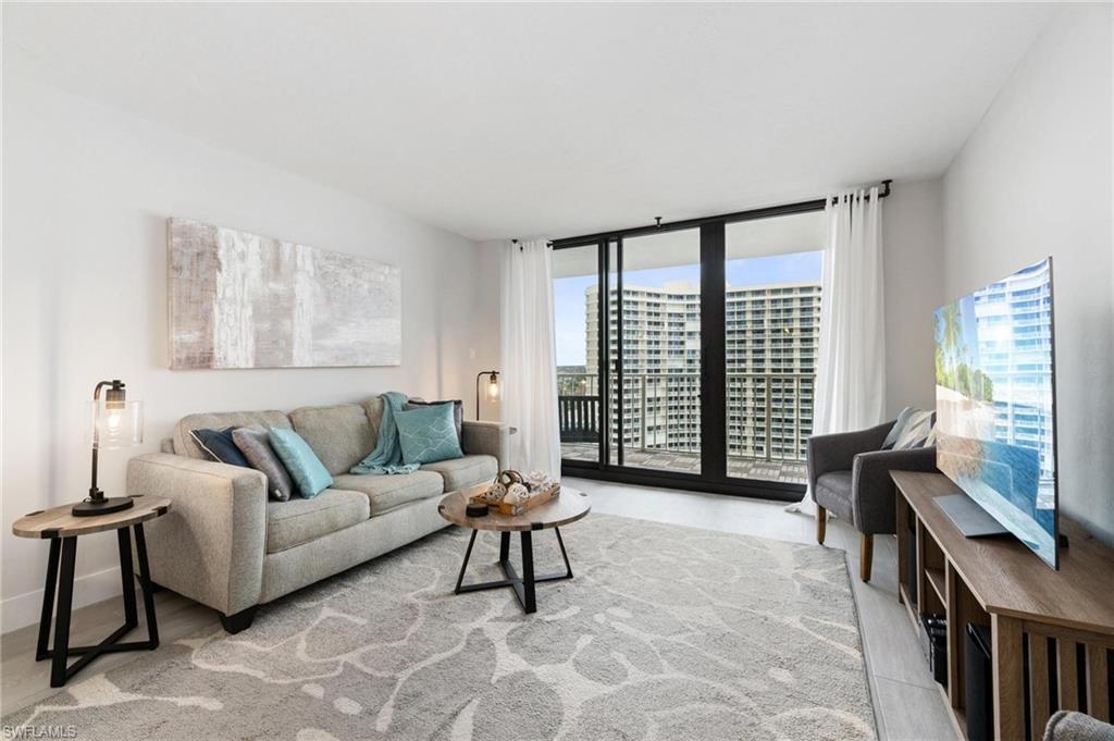 Step into paradise with this stunning condo, a fantastic investment opportunity. Recently renovated, it features a brand-new kitchen with quartz counters, stainless-steel appliances, and a farmhouse sink. The spacious dining area has new light fixtures, while both bathrooms are fully remodeled with walk-in showers, vanities, and tile flooring throughout. Impact windows and doors offer added protection. Enjoy breathtaking beach and Gulf views from every room and peaceful southern views of Marco islands beach from the large balcony. With an impressive rental history, this turnkey-furnished gem is ready to go.