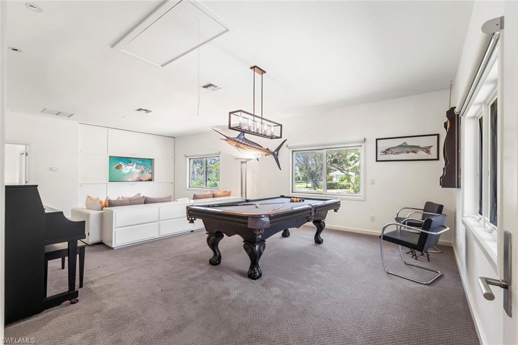 Nestled in the lush canopy of Coquina Sands is an exceptionally lovely and very spacious 3,400 SF property. Walk to Lowdermilk Beach. Walk to the new Four Seasons resort. The four-bedroom, four bath, pool home features unique decorative elements (e.g., aluminum chain blinds in the dining room and kitchen), a massive game room (pool table and 75" TV and separate seating area) AND two other great rooms. A perfect property for your family or vacation experience. Live in the property as is or make it your own. Zone X. No Ian, Irma or other H2O.