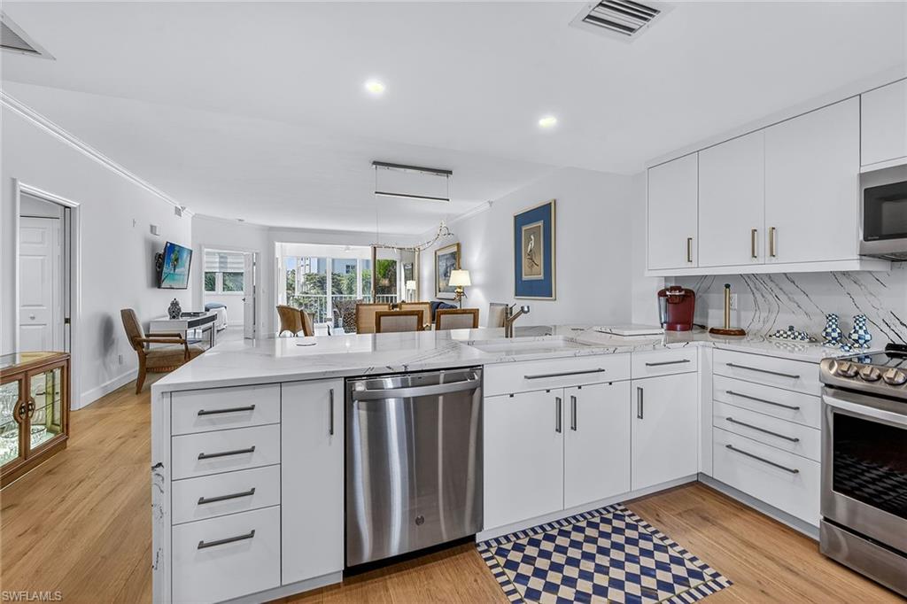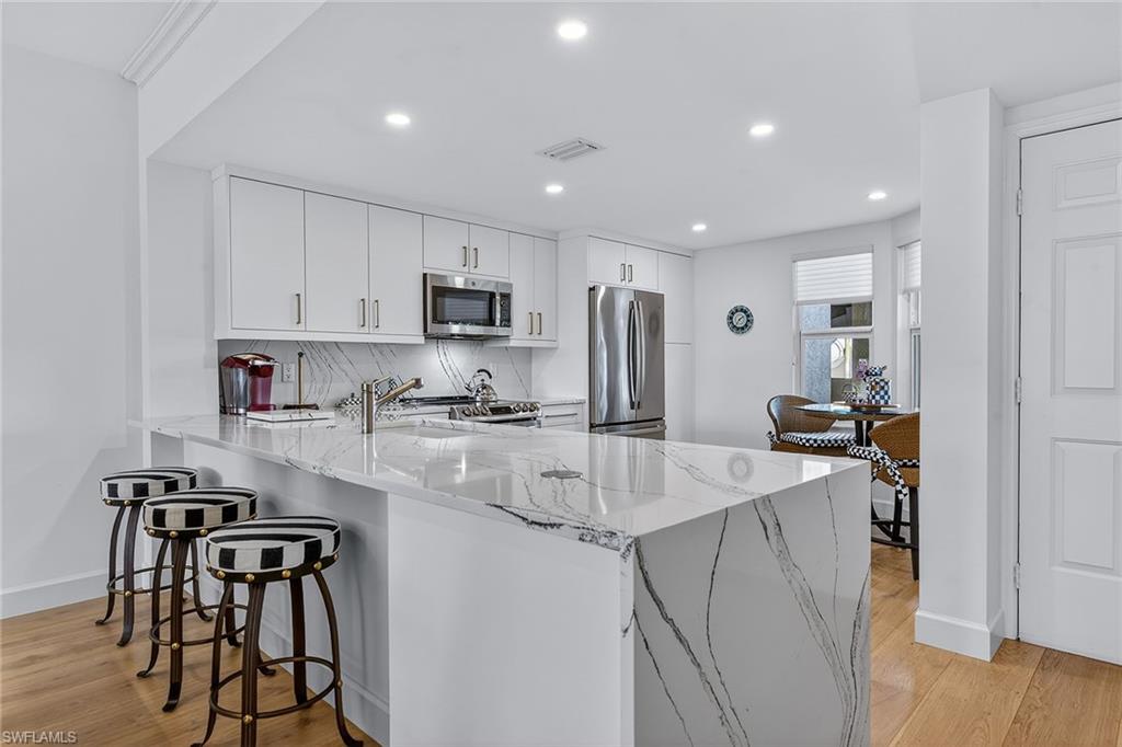 Welcome to St. Vincents at Crown Colony, one of Pelican Bay’s most prestigious and sought-after enclaves. This fully renovated 2-bedroom, 2-bath residence is offered turnkey, showcasing top-of-the-line finishes and appliances, designer furnishings, and an effortless move-in experience. Enjoy peace of mind with impact-resistant windows and doors, and savor beautiful sunsets with west-facing views. Located within a gated community with 24/7 guard service, this property offers exceptional security and privacy. Positioned for ultimate convenience, the home is just a short stroll to two Pelican Bay tram stations and the South Tennis Courts, placing world-class amenities right at your fingertips. Additional features include one deeded parking space, a large private storage closet, and access to the community pool - perfect for relaxing under the Florida sun. Pelican Bay offers world-class amenities including two private beach clubs with beach attendants and restaurants, a tram system for easy transport to the beach, a state-of-the-art fitness center, tennis and pickleball courts, kayaking and paddle boarding, scenic walking paths, and group events, activities and clubs. A quick walk to Artis–Naples and Waterside Shops, and only a short drive to Fifth Avenue or Mercato, this community is well-positioned for both ease and social activity.