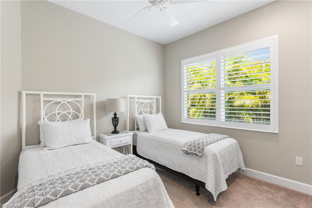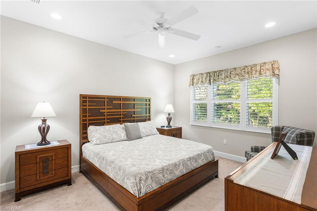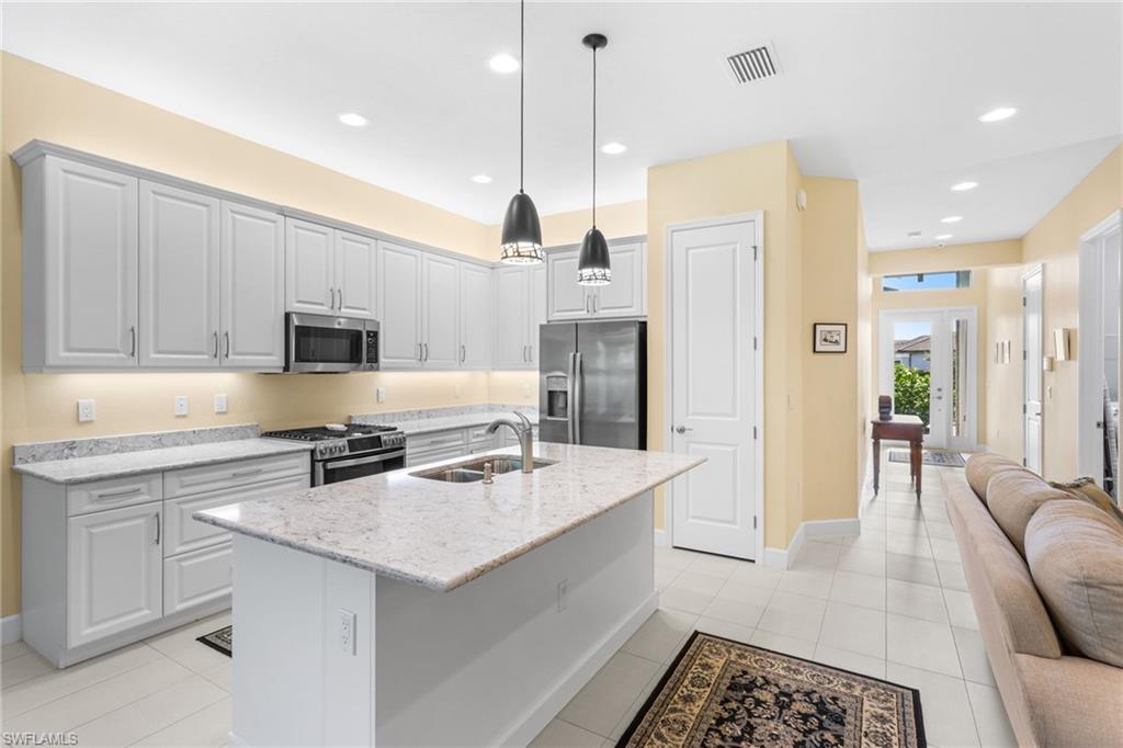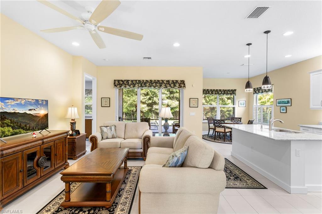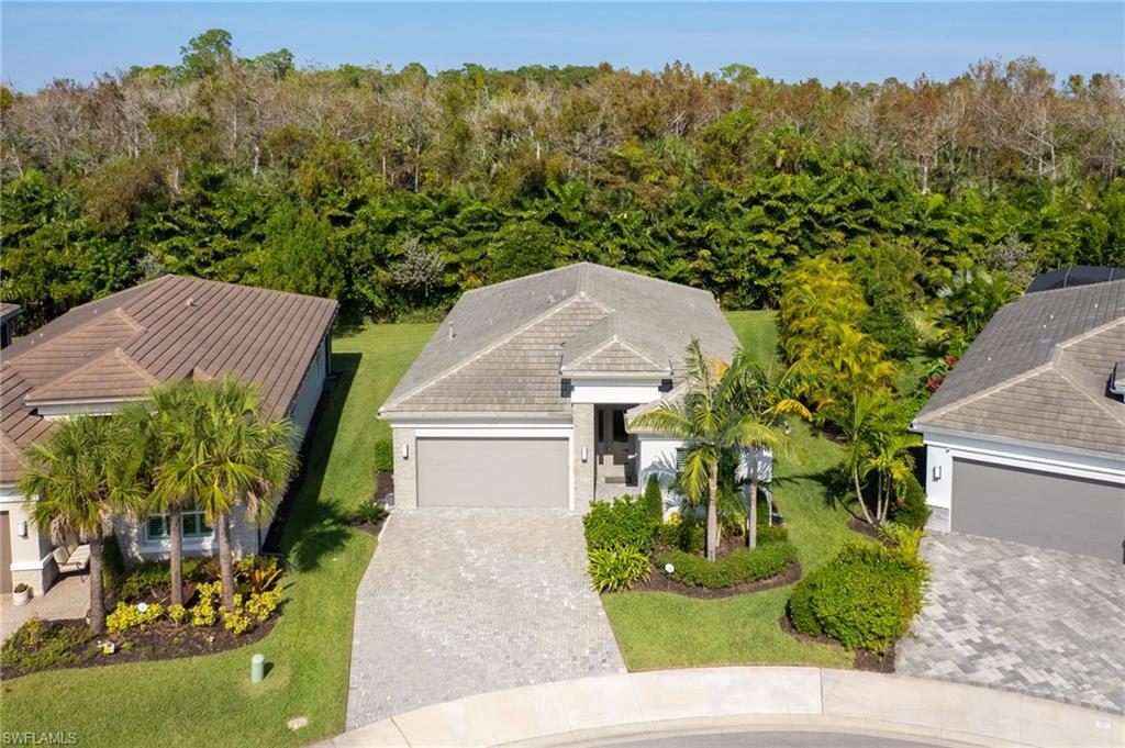 Valencia Trails living at its best! This Sandpiper model sits on an oversized pie-shaped cul-de-sac lot offering rare privacy, a tranquil preserve backdrop, and a great open landscaped view across the street—no claustrophobic “house-on-house” feel here. Step inside to an inviting open-concept layout with a true 3-bedroom, 2-bath design, impact glass throughout, and tasteful finishes including plantation shutters and ceiling fans in every room. The custom kitchen is a standout, featuring a large island, natural gas cooking, stainless steel appliances, and an abundance of deep drawers for easy-access storage. Relax or entertain on the extended screened lanai and patio with upgraded pavers, where you can enjoy quiet preserve views and plenty of room for outdoor dining and lounging. The extended garage adds valuable extra space for storage, hobbies, or a golf cart. For peace of mind, the home is equipped with front and rear cameras, enhanced exterior lighting, and a video doorbell. Beyond your front door, Valencia Trails offers resort-style 55+ living with a 43,000 sq. ft. clubhouse, card rooms, art studio, sports lounge, indoor/outdoor dining, lap/resort/resistance pools, spa, cabanas with food service, fire pits, and a full calendar of social events—plus pickleball, tennis, and bocce. This is the Naples lifestyle—refined, low-maintenance, and move-in ready.