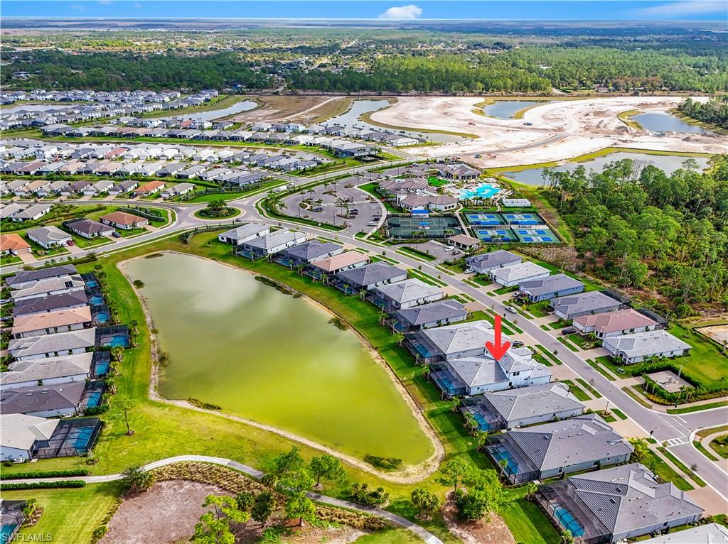 Beautiful 2-story Layton Grande home in the new Terreno by DiVosta community, offering stunning water views and exceptional indoor–outdoor living. This 5BR/4.5BA residence features a 3-car garage with epoxy flooring and stucco-finished walls. Inside, the open-concept kitchen impresses with an elegant Silestone island, Silestone countertops, white cabinetry with matte black hardware, upgraded sink and faucet, under-cabinet lighting, pendant pre-wiring, built-in appliances, and a 48" KitchenAid built-in side-by-side refrigerator. The main living area flows seamlessly to the outdoor space, where you’ll find pre-plumbing for an outdoor kitchen and a custom screened-in pool and spa—perfect for entertaining or relaxing while taking in the sunset. An upgraded laundry room with white cabinets and Silestone countertops adds convenience. The first-floor primary suite is a peaceful retreat with a luxurious bath featuring an enlarged walk-in shower with full-height tile, Silestone counters, and stylish finishes. Three additional first-floor bedrooms and two full bathrooms provide comfortable accommodations for guests or family. Upstairs, a spacious loft offers a versatile second living area—ideal for a media room, office, or lounge. A large bedroom and full bathroom on this level create a private guest suite or family hideaway. Terreno offers resort-style amenities including a 15,000 sq. ft. clubhouse, community event room, catering kitchen, state-of-the-art fitness center, exercise studio, 8 pickleball courts, 2 tennis courts, dog park, playground, firepit lounge, resort pool with lap lanes, heated spa, full-service bar & grill, food truck drive-up, and an adjacent 18-hole public golf course. A truly impressive home—schedule your tour today!