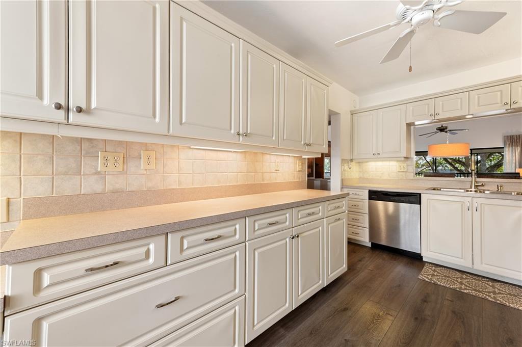 Beautiful expansive lake views from this second floor, 2 bedroom, 2 bath condominium in one of the best Kings Lake condo locations. Large updated kitchen with pass through to dining/living area, creating bright, open spaces. Stunning lake views from the large 210 sq. ft. lanai overlooking the lake, which also has a storage closet. Front entry has second smaller lanai. Lush, mature, well tended landscaping. People and pet friendly neighborhood with tennis courts, two attractive pool areas, pickleball, bike and jog path around lake. With shopping and restaurants within a short walking distance!. All this only 4 miles to downtown and Naples beaches!