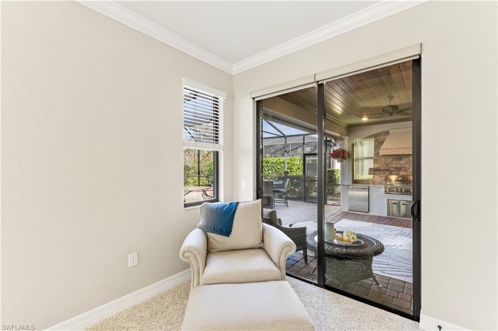 Discover a rare opportunity to enjoy immediate golf access with a deeded golf membership included. Imagine playing on the day of closing on one of two championship 18-hole golf courses. From the moment you enter the gates of TwinEagles, you’ll feel like you’re on vacation. Spanning 1,115 acres of natural beauty and adjacent to a protected nature preserve, this Audubon-certified community is known for abundant wildlife, shimmering lakes, and serene surroundings—making it one of Southwest Florida’s premier golf communities. This single-family home is truly a labor of love, offering approximately 2,300 square feet of thoughtfully designed living space blending sophistication with comfort. The open-concept floor plan features 3 bedrooms plus a den and 2 baths, ideal for everyday living and entertaining. The spacious living and dining areas flow seamlessly—perfect for gathering with family and friends. Enjoy serene preserve views, upscale finishes, and thoughtful upgrades throughout. The gourmet kitchen showcases an oversized circular island with wrap-around seating, custom cabinetry, new quartz countertops, and stainless steel appliances. Step outside to your private outdoor oasis featuring a large screened lanai with outdoor kitchen, multiple seating areas, and panoramic preserve views. The preserve offers complete privacy and will not be developed. This creates a peaceful backdrop filled with natural beauty and wildlife. Relax by the pool, dine al fresco, or unwind in the tranquil setting. Beautifully landscaped to enhance the space, making it ideal for enjoying morning coffee. The primary suite is a peaceful retreat with direct pool access, two walk-in closets, and an en-suite bath. Two guest bedrooms offer flexibility for family or visitors. The den provides additional living space and can be used as a home office, media room, lounge, or optional fourth bedroom, complete with walk-in closet and garden doors. Custom Hunter Douglas window treatments throughout. Renovated laundry with new appliances. Additional highlights include fresh exterior paint (2025), designer lighting, ceiling fans, coffered ceiling in the dining room, custom wood accent walls, impact-resistant windows and doors, and electric storm screen for shade and protection. The home also features a whole-house water filtration system. The attached air conditioned garage includes overhead storage and numerous other options. As a TwinEagles resident, enjoy access to the recently renovated $23 million clubhouse offering three restaurants, a resort-style pool, state-of-the-art fitness center, Har-Tru tennis courts, pickleball, bocce, and more. At TwinEagles, it’s more than a home—it’s a lifestyle of golf, leisure, nature, and community. Agent see attached fees and confidential comments.