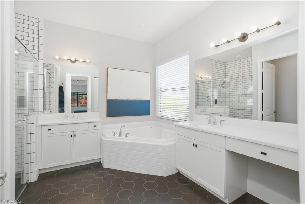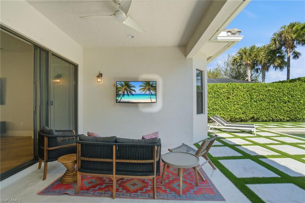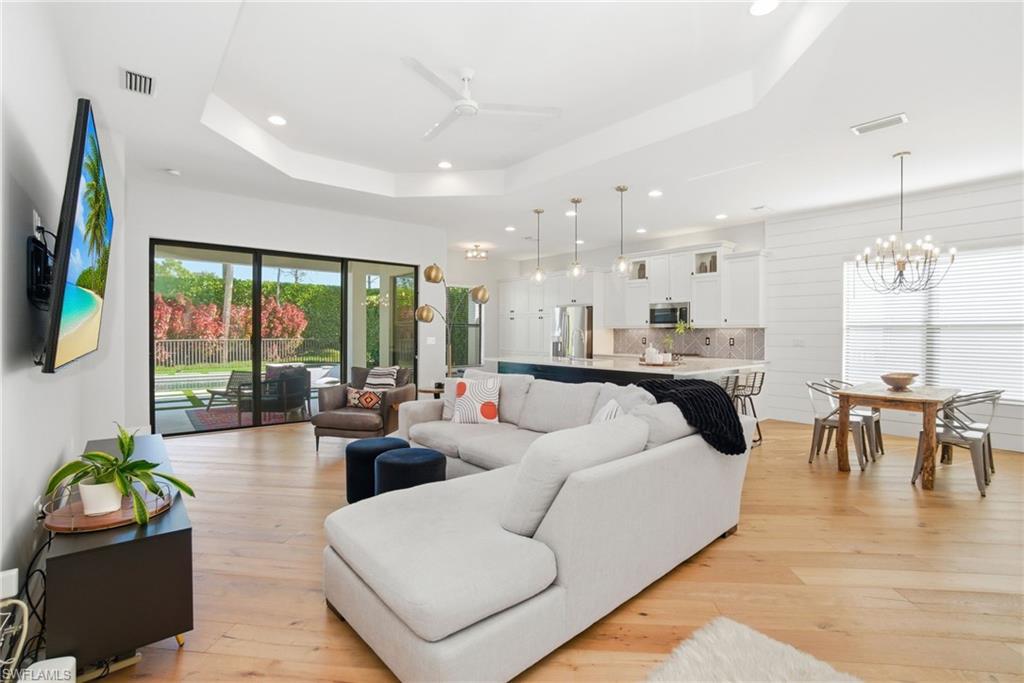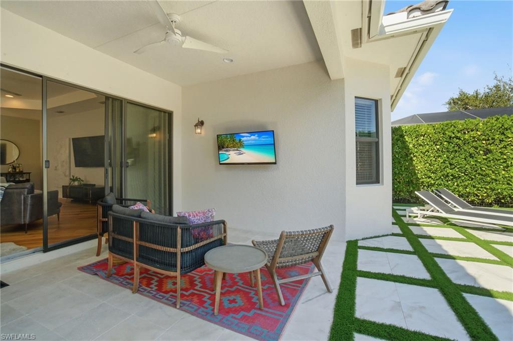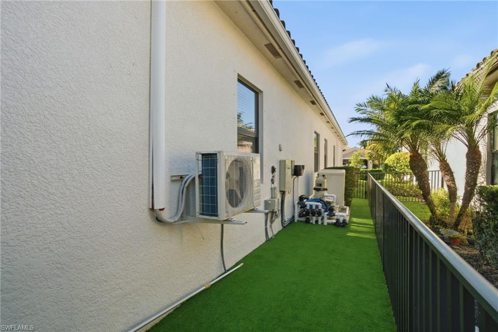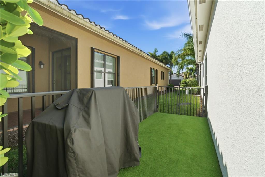Located in a highly sought-after planned unit development, this upgraded 3-bedroom + den, 3-bath home offers privacy, functionality, and resort-style living. Features include diagonal hardwood flooring throughout, upgraded tile in baths, and a modern open great room floor plan with split bedrooms for added privacy. The kitchen is equipped with a gas range (rare for Naples) and opens seamlessly to the living space. The owner’s suite is privately situated and includes a mini-split system for enhanced comfort. Enjoy a fully fenced backyard with low-maintenance turf, saltwater pool and spa, and electric heater for year-round use. Additional highlights include a 3-car garage and prime location just 20 minutes from RSW Airport, beaches, dining, and entertainment. Community amenities include tennis, pickleball, fitness center, indoor/outdoor basketball, splash pad, two resort-style pools, a community room more.