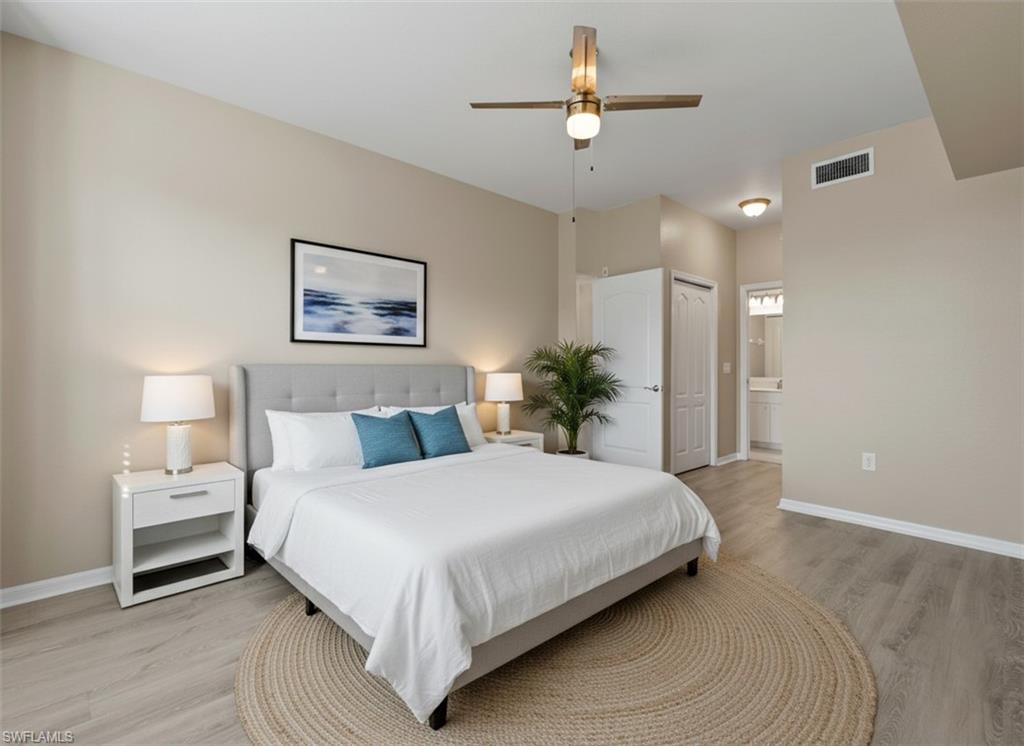Beautifully updated first floor, end unit condo with peaceful lake views in the Barletta neighborhood of Bella Terra. This move in ready 2 bedroom plus den, 2 bath home features fresh interior paint, new granite counters, a new dishwasher, an open and bright floor plan, and a private screened lanai overlooking the water. The split bedroom layout provides comfort and functionality with all tile and laminate flooring. This spacious condo includes a carport with extra storage room. Barletta offers a community pool and access to Bella Terra’s resort style amenities including a clubhouse, fitness center, pickleball, tennis, bocce, and more. This home offers value in one of Estero’s gated communities with nearby access to I-75, FGCU, Miromar Outlets, Coconut Point, and RSW Airport. Come Enjoy the relaxing SW Florida Lifestyle Today!