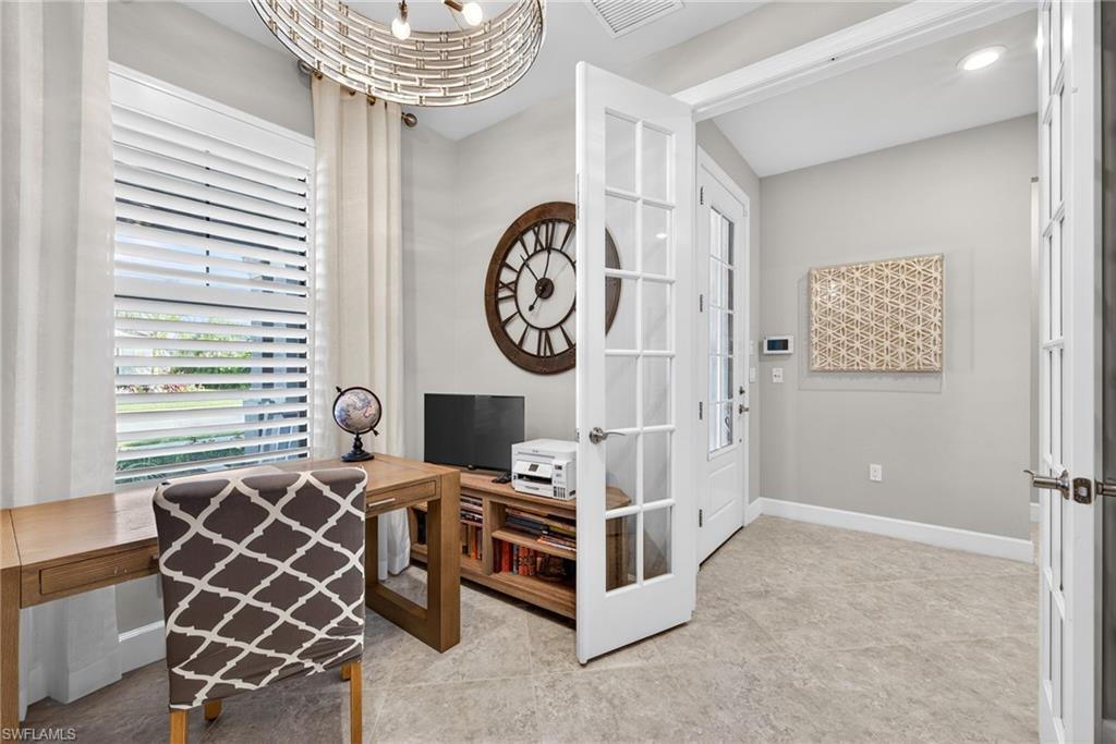 Experience refined living in this professionally decorated former Pulte Homes Dockside model home offering just under 2,700 square feet of thoughtfully designed living space. This residence features 4 bedrooms, 2.5 baths, and a 3-car tandem garage. From the moment you enter, the home exudes serenity, highlighted by shiplap accent walls in the dining room and large, diagonally laid tile flooring throughout the main living areas. The chef’s kitchen is both stylish and functional, showcasing a large island, a window over the sink, and an impressive walk-in pantry. The inviting family room is warm and comfortable, ideal for everyday living and entertaining. The luxurious primary suite offers an extended living space featuring a sitting area, custom built-in closets, dual vanities, and a large walk-in shower. Secondary bedrooms are generously sized, light-filled, and offer ample closet space, sharing a well-appointed bathroom with abundant storage and counter space. Outdoor living is exceptional with a large heated pool overlooking beautifully landscaped grounds. The covered lanai provides both lounging and dining areas, perfect for relaxing or entertaining. Additional highlights include a unique garage design with a paved walkway from the driveway to the side entry door and ample storage within the 3-car tandem garage. The home also features VITEX pre-wiring throughout including an alarm system.
